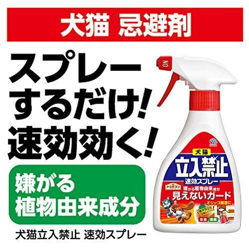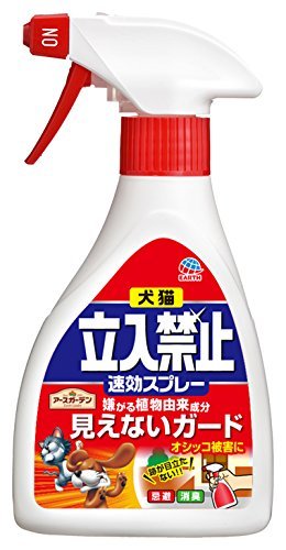 忌避剤・不明 剤260g 260g・・Color:不明Size:剤260gStyle:忌避剤・成分:植物精油(シトロネラ、ユーカリ)など・内容量:260g・パッケージ重量: 0.34 kg・スタイル: 忌避剤犬猫が嫌がる植物由来成分で見えないガード 【用途】 犬猫の忌避剤 【特徴】 ・犬猫の嫌がる天然ハーブ成分のニオイが忌避効果を発揮、お散歩中の犬猫のフン尿被害、侵入を防ぐ ・したところは乾くと跡が残らないので、使っていることを他の人に気づかれにくく、一戸建てやマンションの玄関や外壁等に使いやすい商品 【注意事項】 ※使用方法は、犬猫が残したフン尿を取り除き、きれいにします。 ※の口をONにし、フン尿の被害を受けた場所・侵入口・通り道等に、約15cm離し、数回します。 ※本品は犬猫がイヤな所には近づきたくないという「学習効果」を利用したものです。 ※繰り返し使用すると効果的です。 ※使用後はの口をOFFにし、直射日光を避けた冷暗所に立てて保管します。 ※使用場所は、玄関、外壁、ベランダ、道路、電柱などになります。 ※植物には直接かけないでください。 ※枯れるおそれがあります。 ※用途以外に使用しないでください。 ※体調のすぐれない時は使用しないでください。 ※かぶれやすい人は使用しないでください。 ※子供やペットの触れる場所に置かないでください。 ※シミ、変色の原因となりますので自動車、門扉、シャッター、その他の塗装面や大理石、金属、プラスチックなどにはかからないよう注意してください。 ※薬剤がかかった場合は直ちに洗い落とす。 ※雨天時やニオイに対して鈍くなっている犬猫や空腹、発情期の犬猫には効果が劣る場合がある。 ※このような場合にはニオイによる忌避以外の対策が必要です。 ※目に入った場は、こすらず流水で充分洗い流してください。 ※飲んだ場合、水で口をすすぎ、すぐに水を飲ませてください。 ※皮ふについた場合、石けんでよく洗ってください。 ※いずれの場合も異常があれば商品を持参し、医師に相談してください。