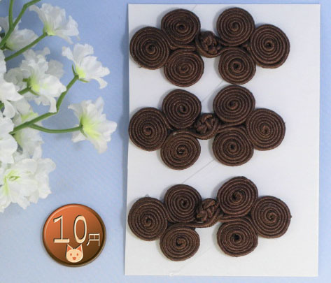 チャイナボタンA渦型/茶色/3個セット/ブラウン/普通郵便可