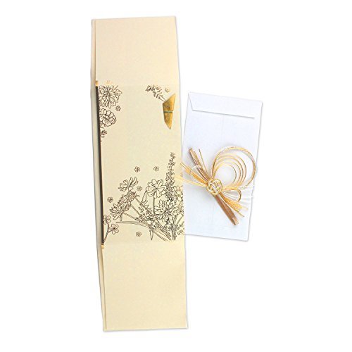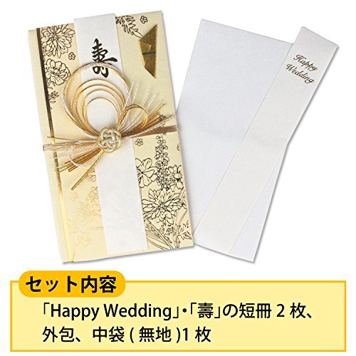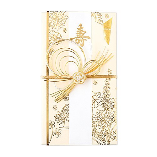 祝儀袋・クリーム キ8C・・Color:クリーム・新しい門出のお祝いにぴったりの祝儀袋です。・「百花」華やかな満開の花々のデザインです。・【カラー】クリーム 【サイズ】105×185mm・【セット内容】「Happy Wedding」・「壽」の短冊2枚、外包、中袋(無地)1枚・【用途】婚礼用 【金額の目安】1万円~10万円くらいまで【新しい門出のお祝いにふさわしい祝儀袋】 「百花」は多くの様々な花、という意味を持ちます。 華やかな満開の花々のデザインが新しい門出のお祝いにぴったりの祝儀袋です。 女性に好まれお祝いのシーンに最適な、緻密な花のイラストを使用しています。 【商品仕様】 カラー/クリーム サイズ:105×185mm セット内容:「Happy Wedding」「壽」の短冊2枚、外包、中袋(無地)1枚 商品名:マルアイ 祝儀袋 祝 デザイン 百花 金封 クリーム キ8C