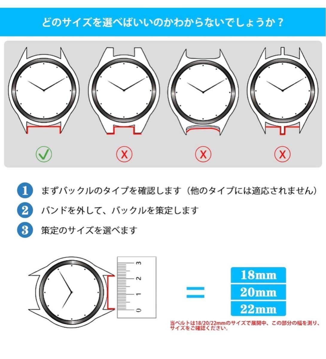 【幅広い適用されるベルト】時計バンド幅:18mm、20mm、22mm。※ご注文前に、バックルのタイプと手首のサイズを確認してください。