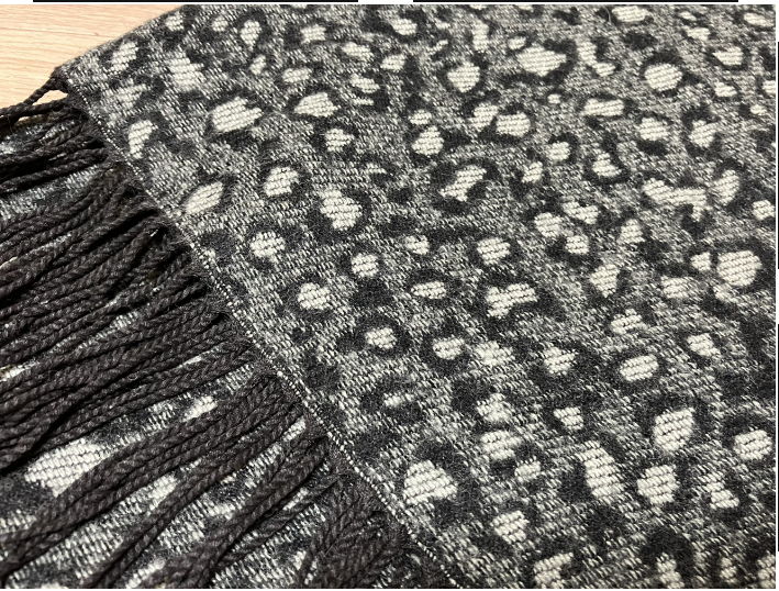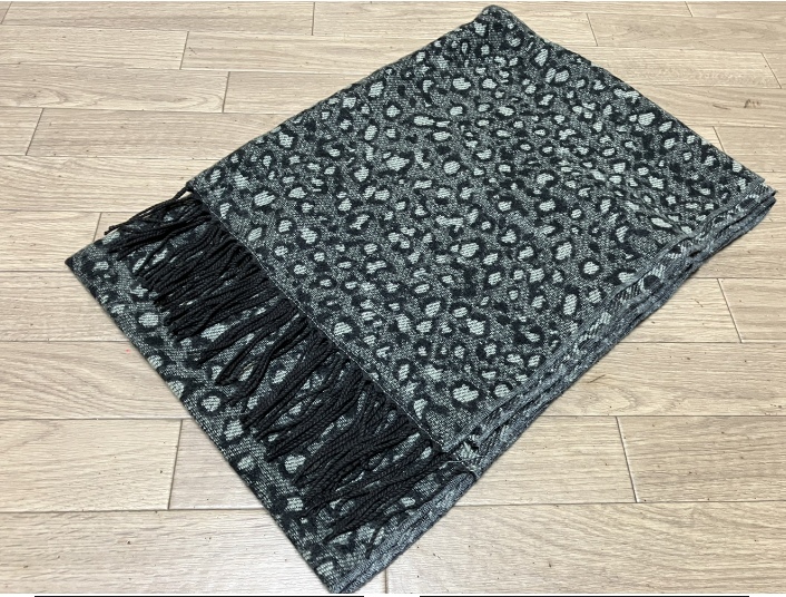 グレー×黒のレオパード柄の暖かストールです♪