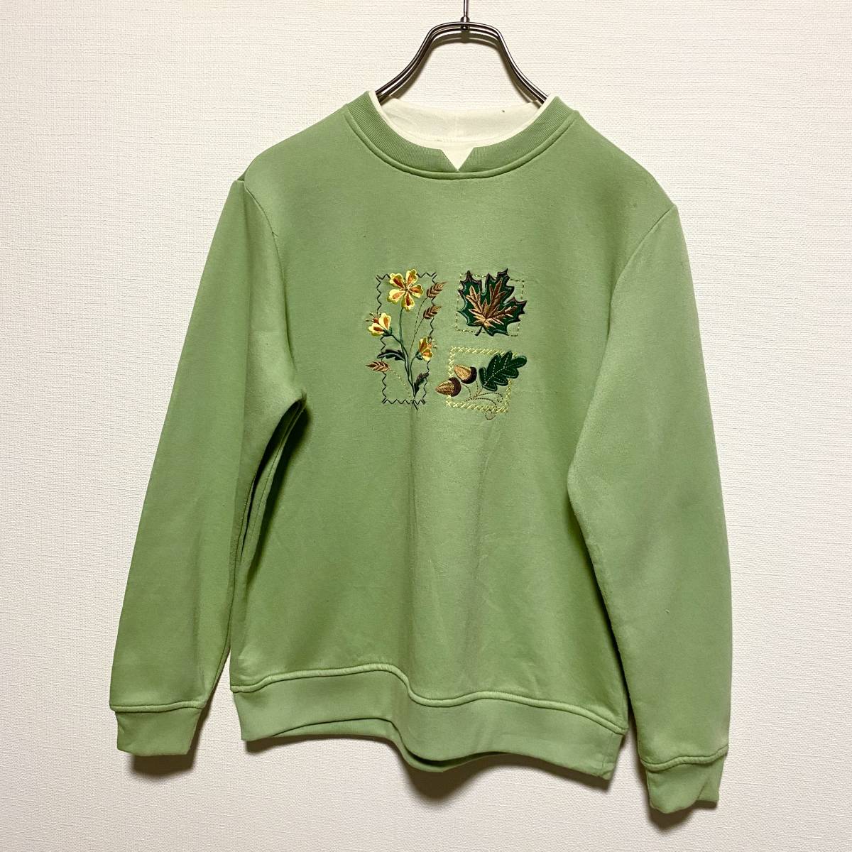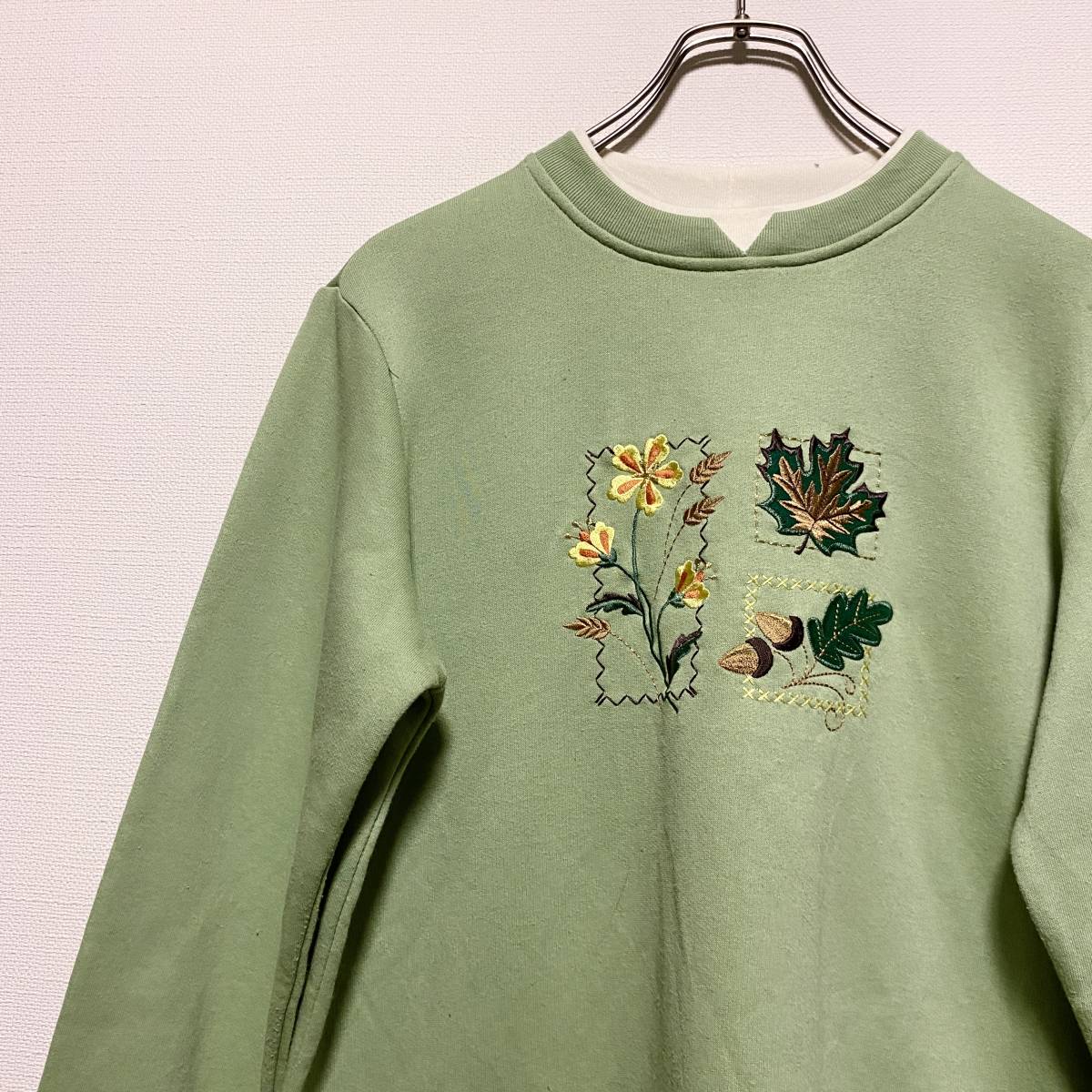 アメリカ古着 トレーナー スウェット レトロデザイン Sサイズ ださかわ 刺繍 レディース 【R72】