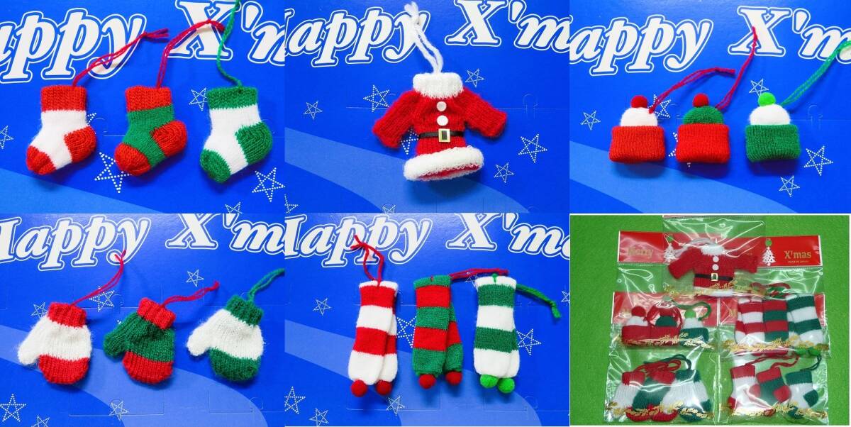【☆ニットマフラー ボウシ テブクロ ソックス サンタセーター☆ 】1pac(1個&3個入り) 5種より選んで下さい^^ チャーム オーナメント 飾り