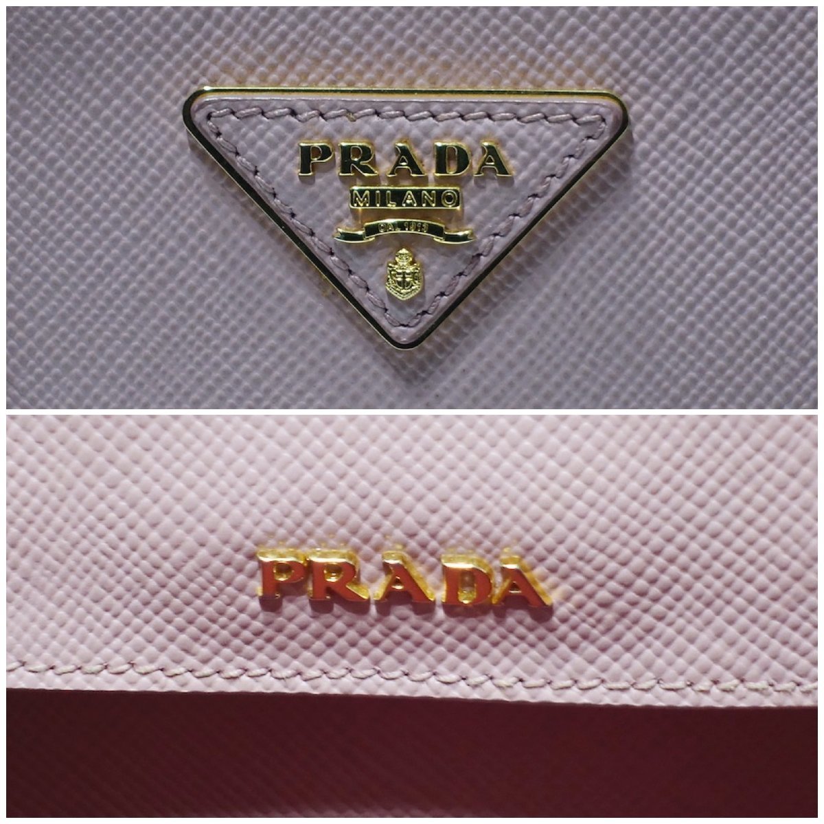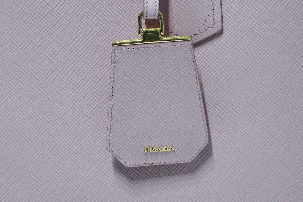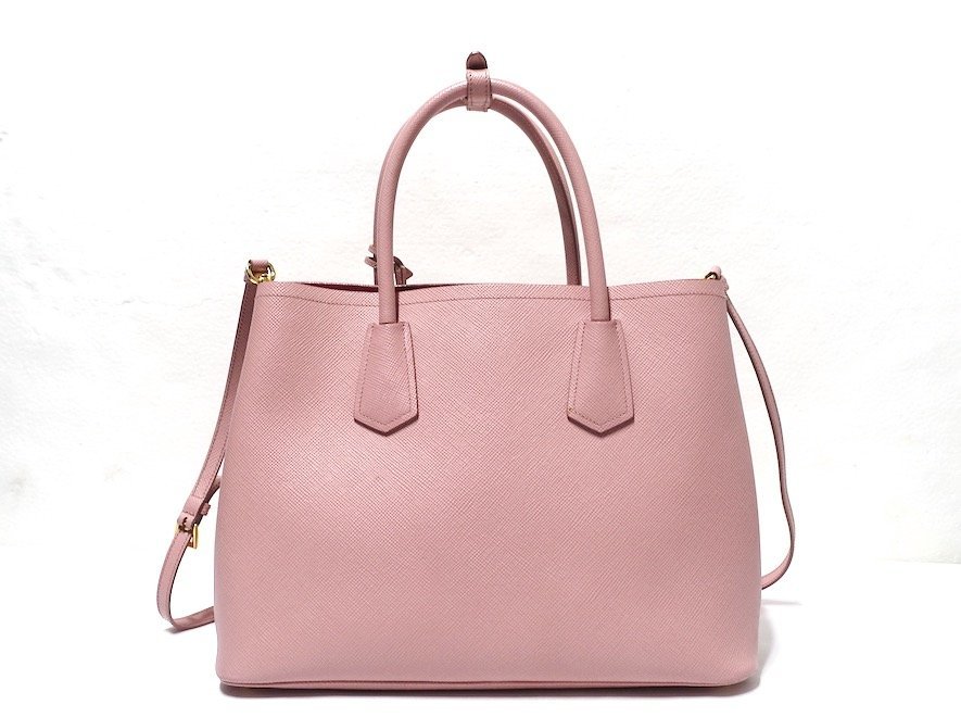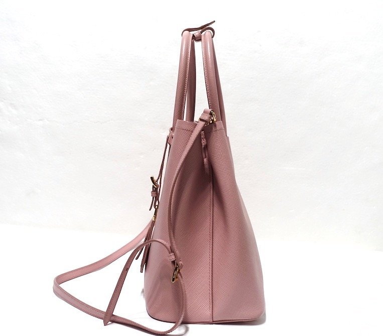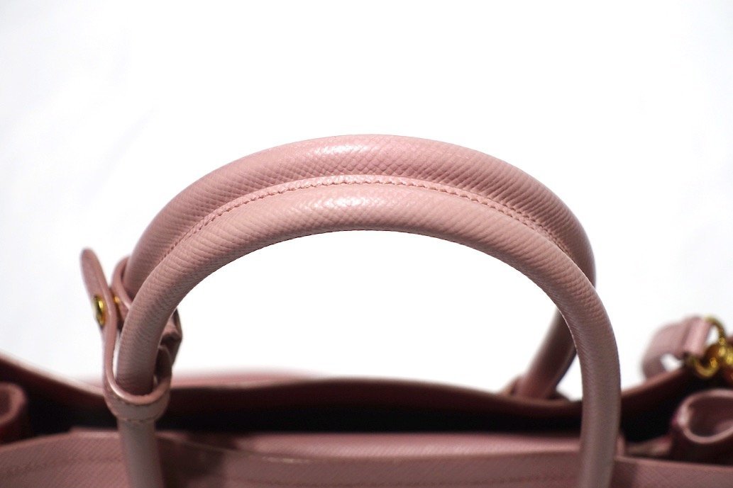 良品 PRADA プラダ ドゥーブレ ミディアム 三角ロゴ 2WAY ハンドバッグ 1BG775 サフィアーノ レザー ピンク トライアングルロゴ