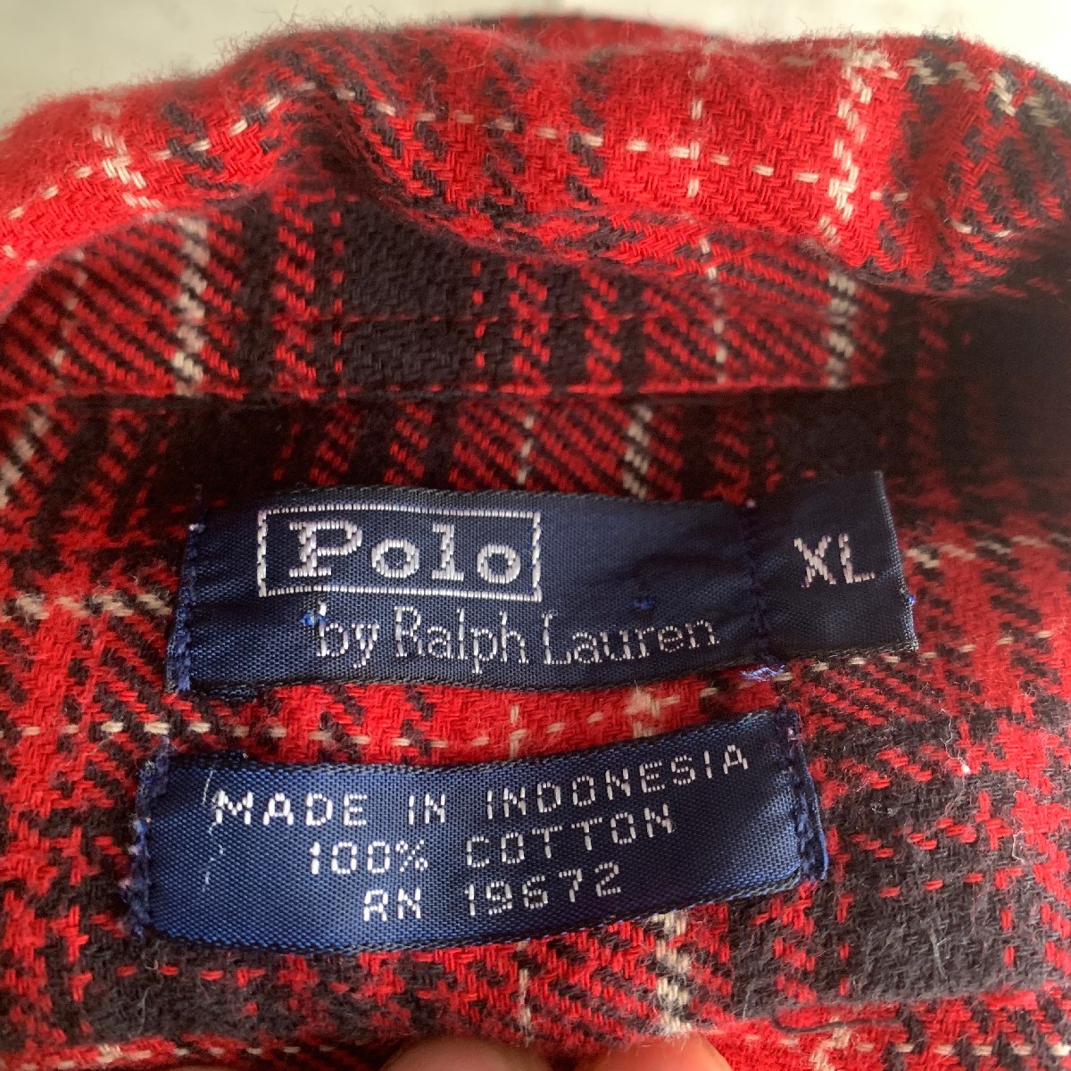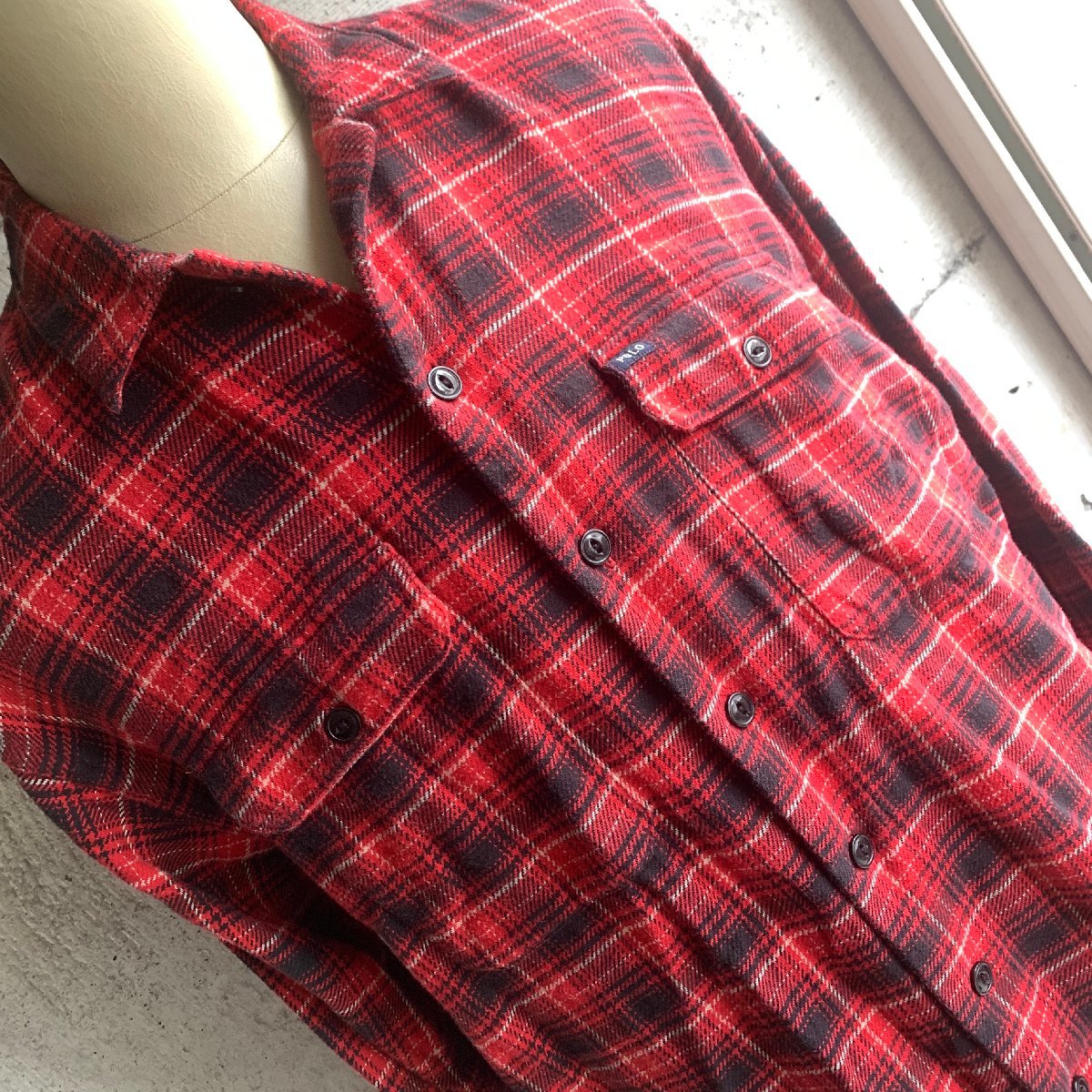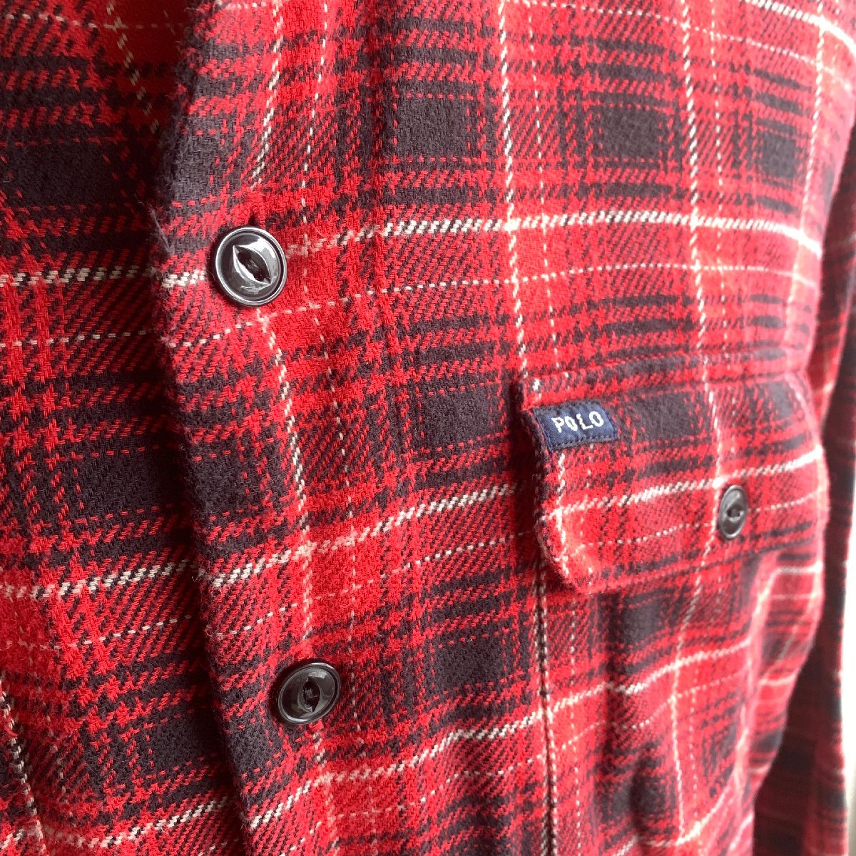 アメリカ古着 ビンテージ ポロ ラルフローレン フランネル チェック シャツ XL size レッド 猫目ボタン U.S Used Clothing 90s Vintage Polo RALPH LAUREN Flannel Shirt
