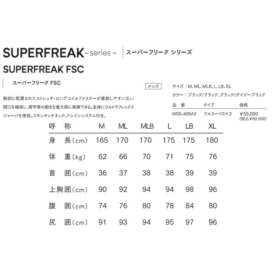予約商品 日本正規品 ロングチェストジップ 3×2mm フルスーツ ■SUPERFREAK series■ 最新のテクノロジーを驚きのコストパフォーマンスで送り出すスーパーフリークシリーズ。 スタイルや用途にあわせてベストな開口デザインを選択可能ソフトな肌触りの「ファイアーウォール」起毛素材を裏面全身に使用。 吸水率の低いナイロン糸を使用し脱水性が良く乾きが早い。 さらに、リサイクルされたペットボトルが紡がれている。 この合成繊維は温室効果ガスの排出が少なく、水とエネルギーを節約することが出来ます。 既製サイズ、限定カラーの限定既製生産品。 【SUPERFREAK FSC】 胸部に配置されたストレッチ・ロングコイルファスナーが着脱しやすい広い開口を確保し、 肩甲骨の動きを最大限に発揮できる。 ドライネック仕様。ドレインシステム付き。3×2mm厚。 ※マイナーチェンジ:品番、カラー。 ※全て限定生産品のため、サイズ・カラーオーダーはお受けできません。 ※店頭ストック分(店置きウェット)オニール社メーカータグに記載の品番やカラーナンバーが同じの場合は全国一律で!同一商品(同一カラー)です。 【サイズオーダー不可】 ■この商品はフルオーダー/サイズ調整(フルカスタムオーダー/セミオーダー)を行うことが出来ません。また在庫切れの場合はキャンセルやカラー/サイズ変更等が出来ませんので予めご了承下さい。 ※カタログ等の写真画像を流用しておりますが、予告なく構造等仕様変更となる場合もございますが予めご了承下さい。
