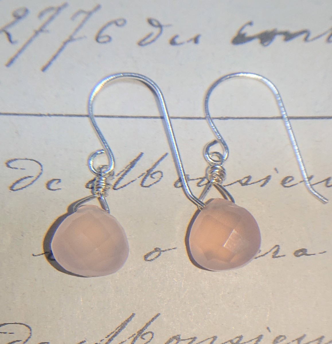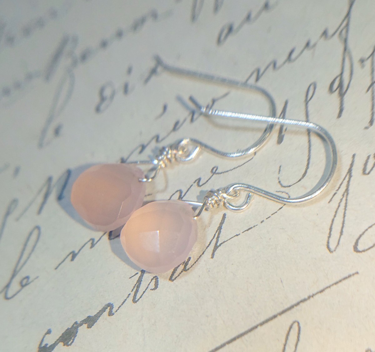 ・石/ピンクカルセドニー(色は加工)、クリアではないですがふんわり光を通す優しい桜色です。