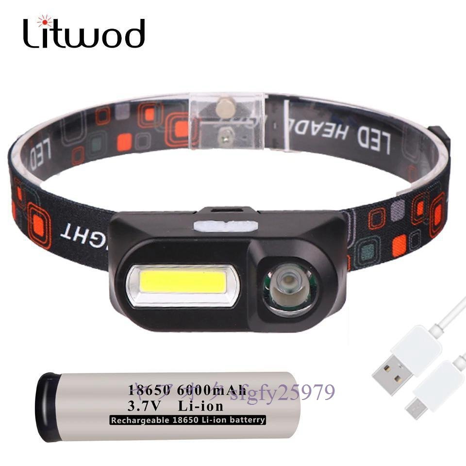 A539C☆新品Litwodz30Ledヘッドランプヘッドライト屋外キャンプポータブルミニXPE+COBLEDヘッドランプUSB充電釣り用