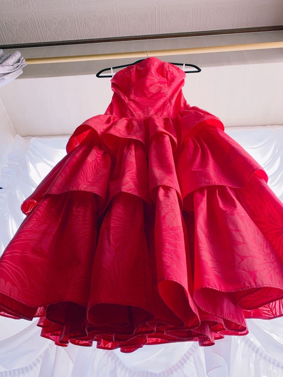 裾回りが756cmほどもあるのでとても存在感のあるドレスです。