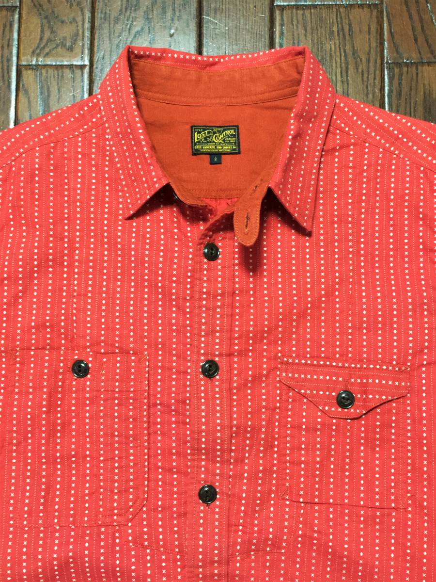 ロストコントロール LOST CONTROL チンスト マチ付き ビンテージ スタイル ストライプ柄 ワークシャツ 2 ガチャポケ ヤンクボタン 日本製