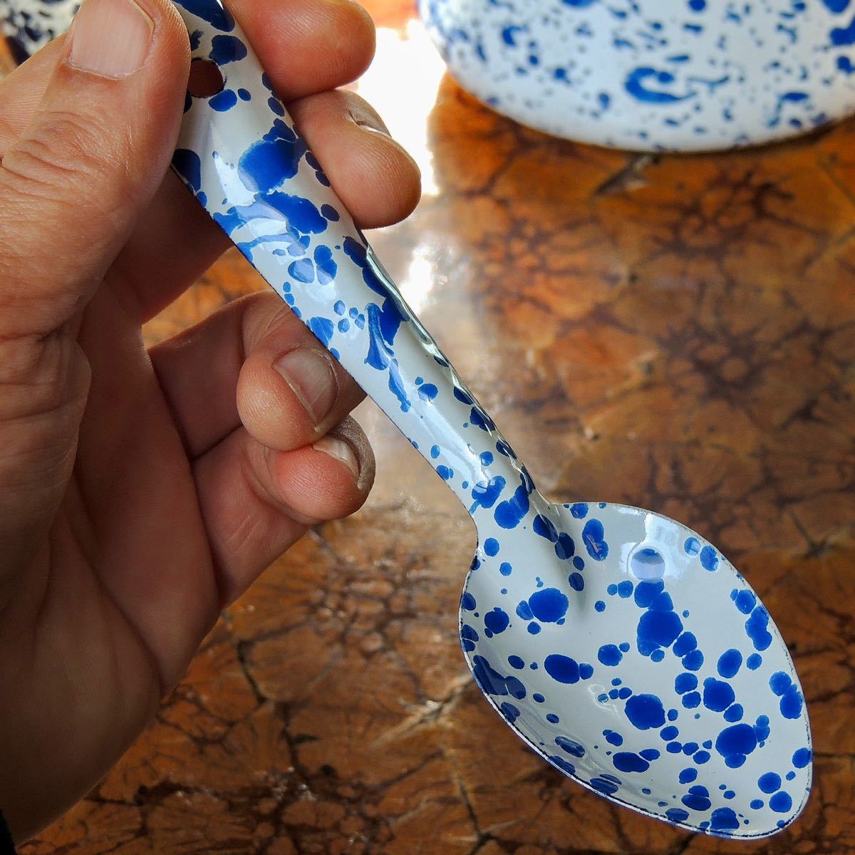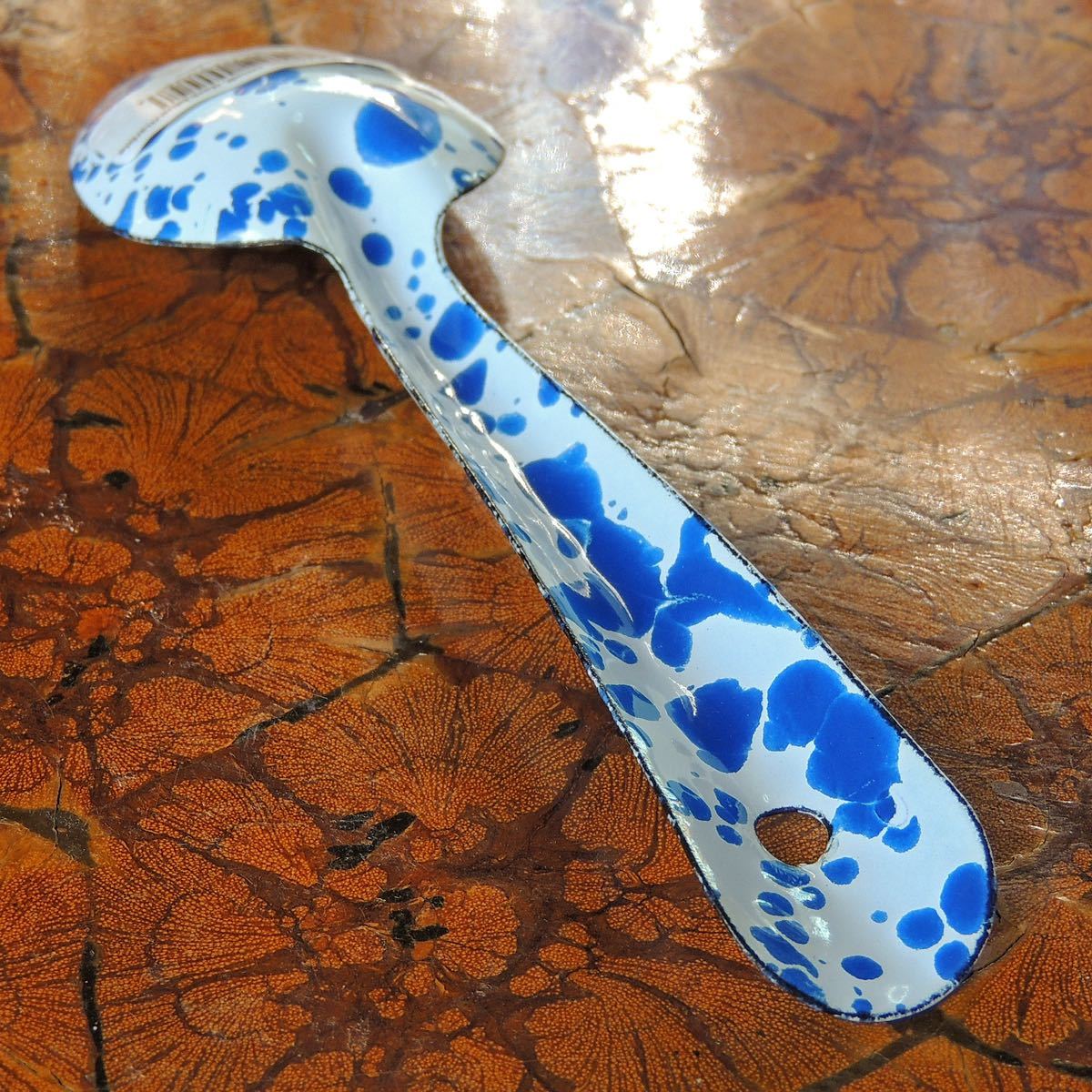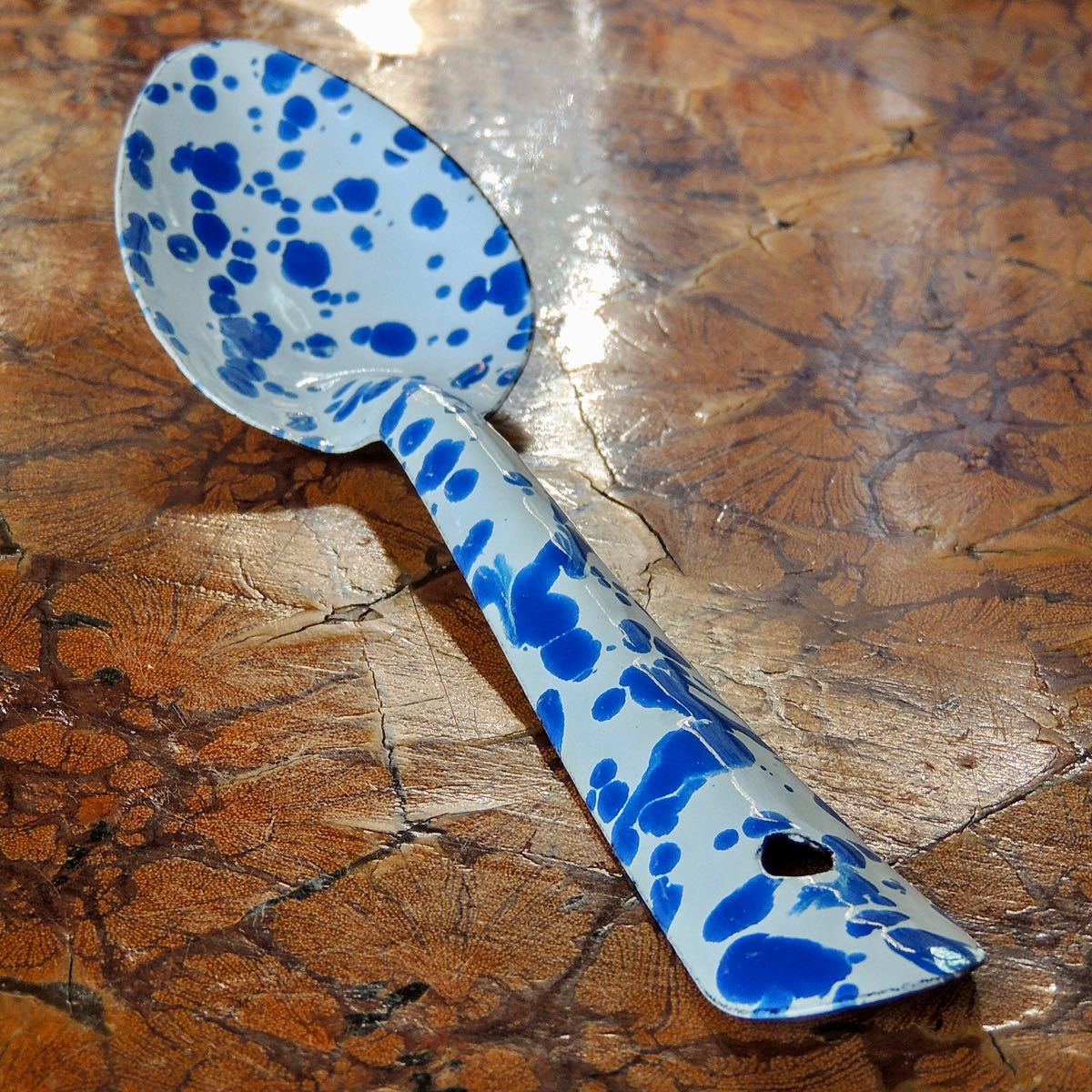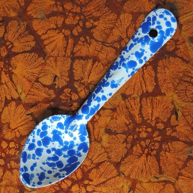 スプラッターパターンと呼ばれる独特の飛沫模様が魅力のホーロースプーン【Sサイズ】です。