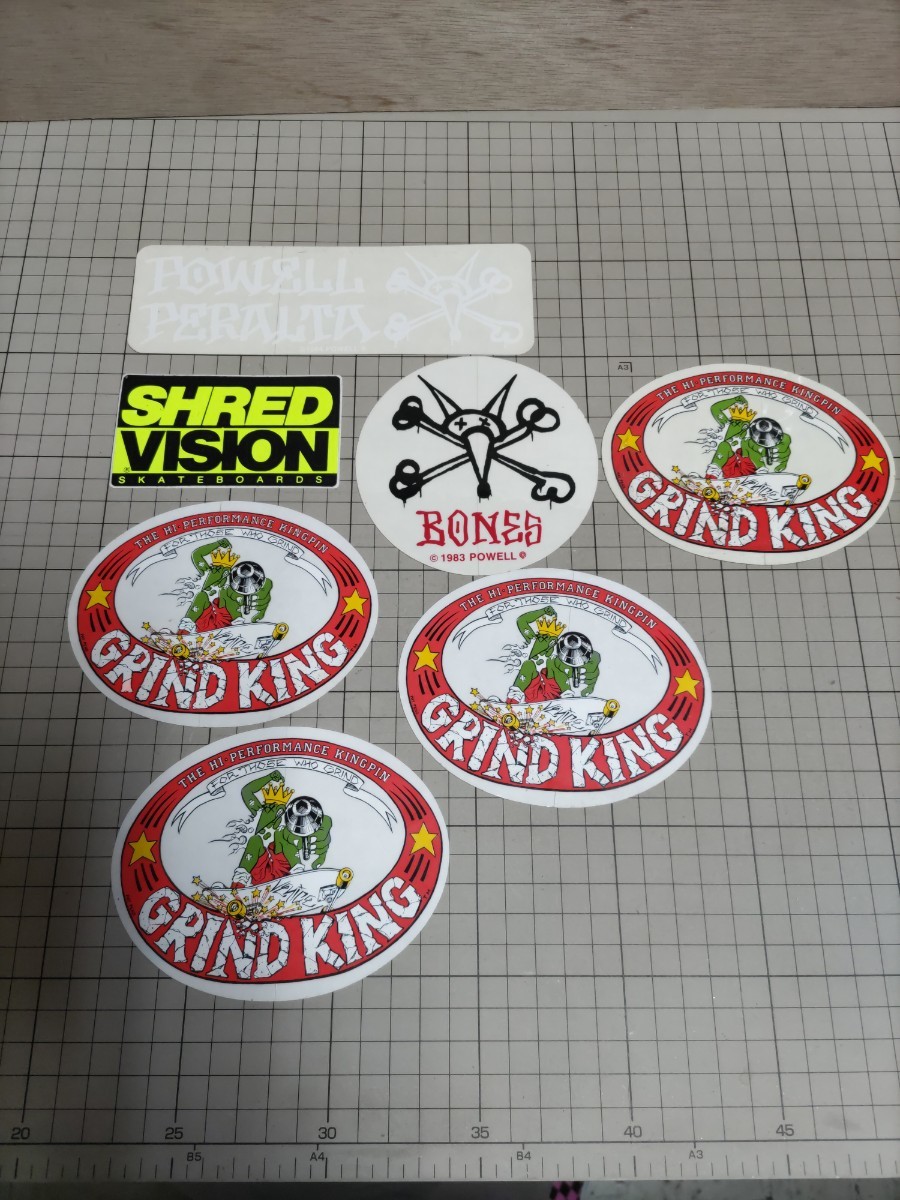 未使用長期保管品のビンテージステッカーのセットです。神経質な方はご遠慮ください。台紙1マス1センチからご判断ください。スケボー関係多数出品中です。