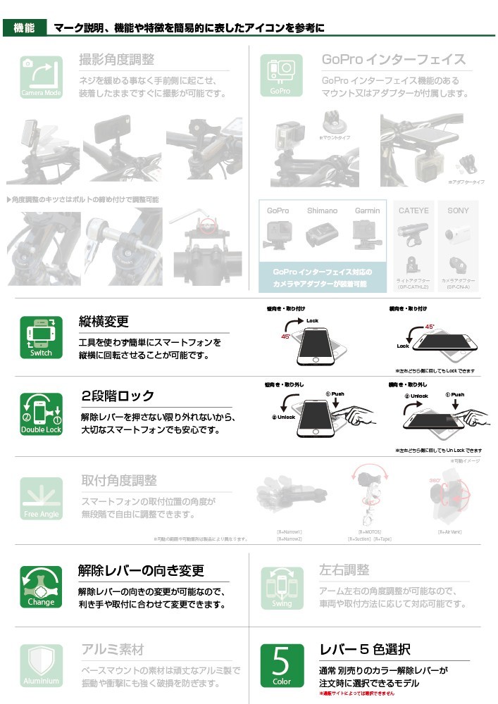 また、マークの説明の機能は商品により異なります。各商品が対応しているか必ず、各商品詳細ページをご覧ください。