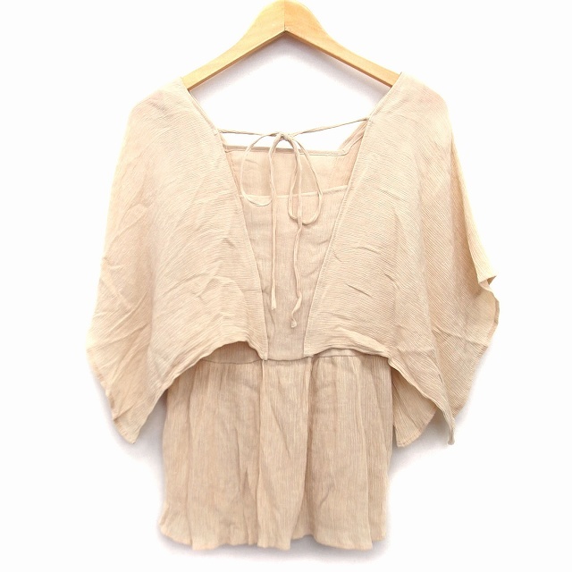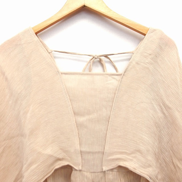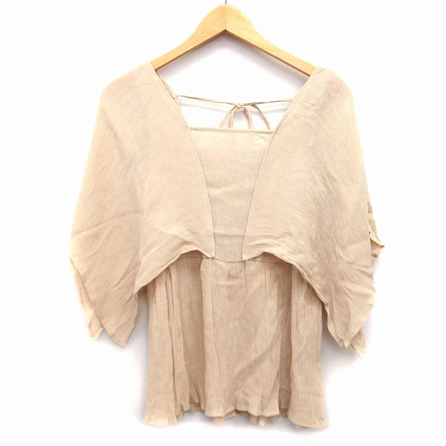 ケイビーエフ KBF アーバンリサーチ カットソー チュニック 透け感 五分袖 スクエアネック リボン ペプラム One ベージュ /HT5 レディース