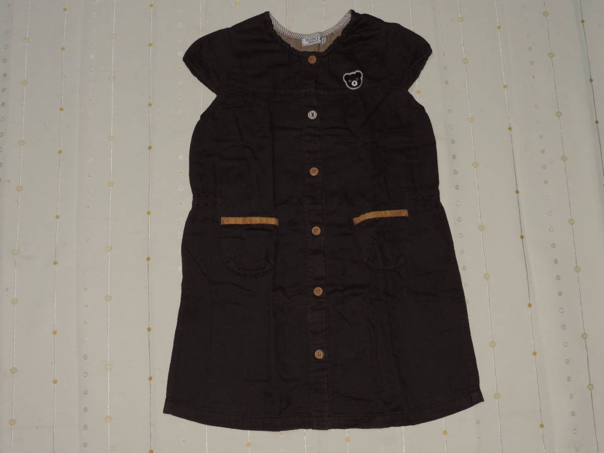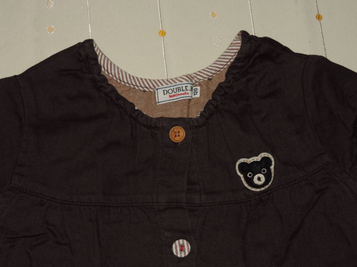 ☆ミキハウス☆ダブルBの胸元くま刺しゅうボタン付き黒の半袖ワンピース☆120センチ☆