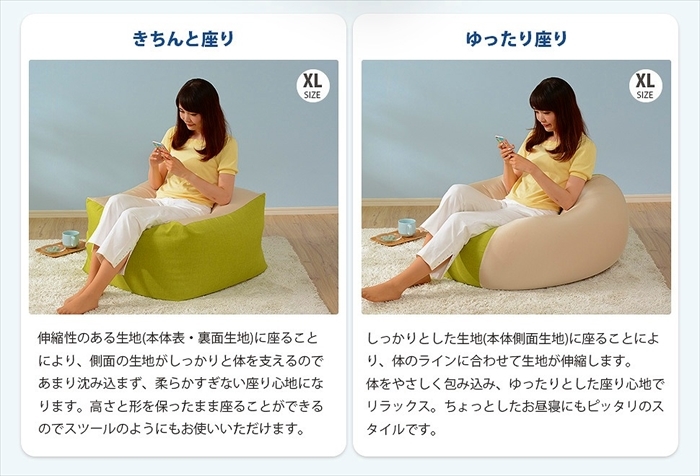 | 極小ビーズを使用した日本製のビーズクッション。 カバーリングタイプで洗濯ができます。 |