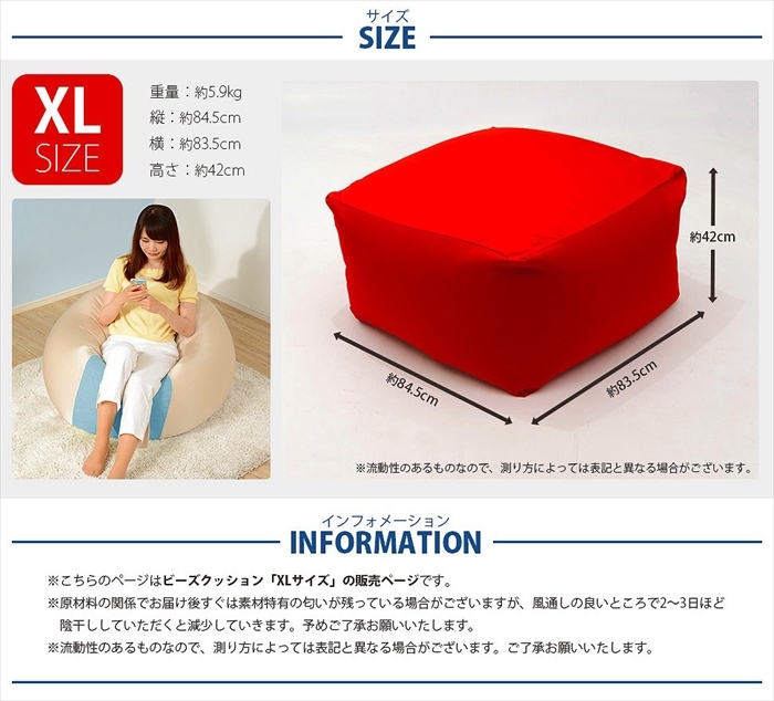 | ※【同シリーズ】のリンクは当店のヤフオク店のページへ進みます。 ● 「QUBE」ビーズクッション M ● 「QUBE」ビーズクッション L ● 「QUBE」ビーズクッション XL ● 「QUBE」ビーズクッション XL 専用カバー ※このページは[「QUBE」ビーズクッション XL]を販売しております。 |