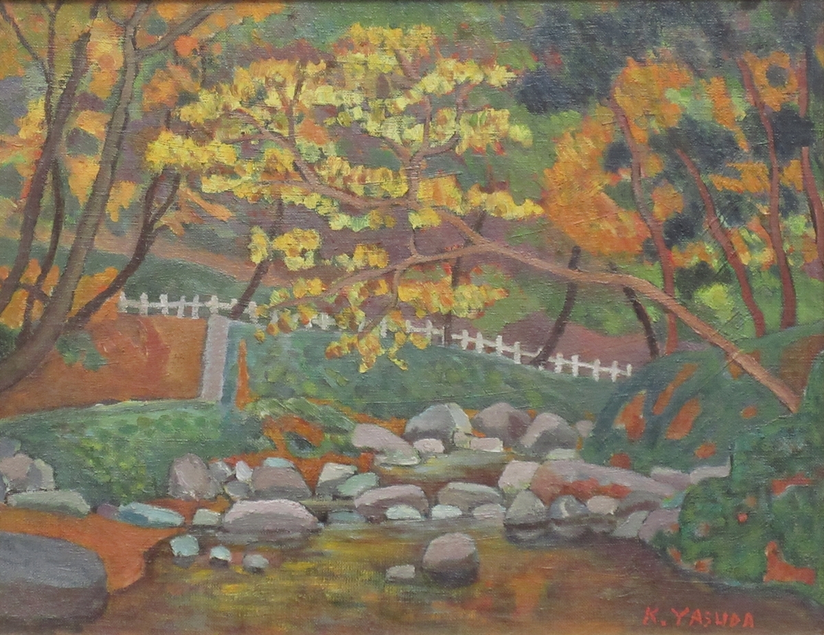 【真作】 安田 勝彦 先生 『箕面公園』 6F 油彩画