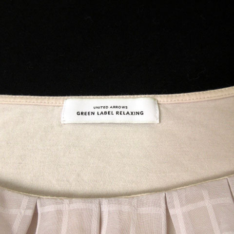 グリーンレーベルリラクシング ユナイテッドアローズ green label relaxing カットソー 異素材 ギャザー グラフチェック スクエア シフォン ピンク レディース