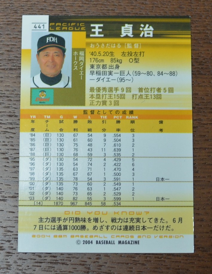 2004年 王貞治監督 プロ野球 トレーディングカード 美品