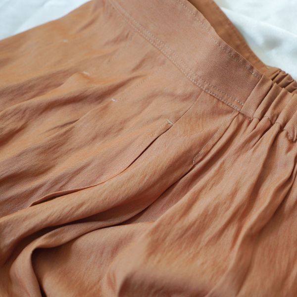 【サイズ S】 ウエスト33.5cm(ゴム) 丈95.5cm スタッフによる平置き計測 多少の誤差はお許しください。 |
