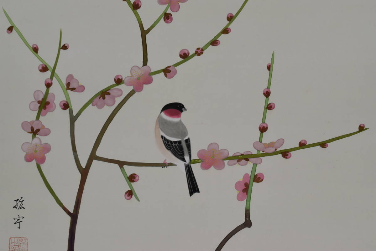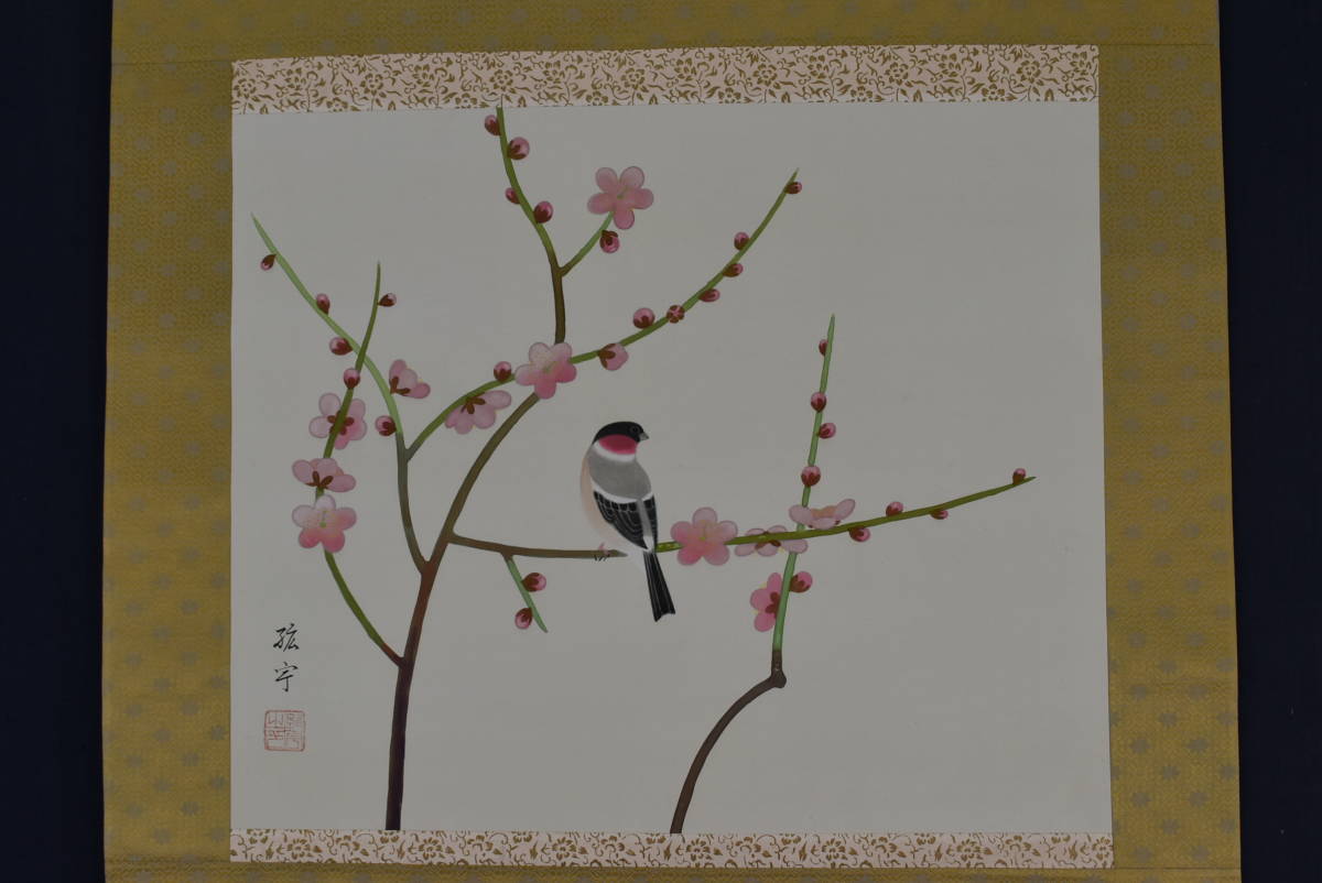 真作/紘宇/紅葉小禽図/横物//掛軸☆宝船☆AA-934