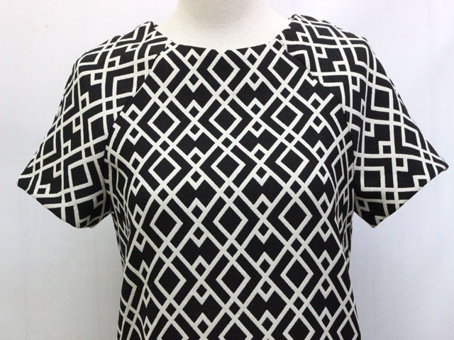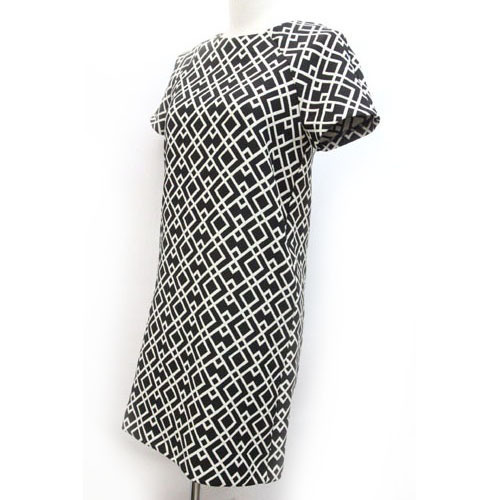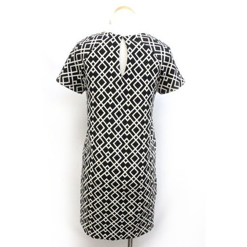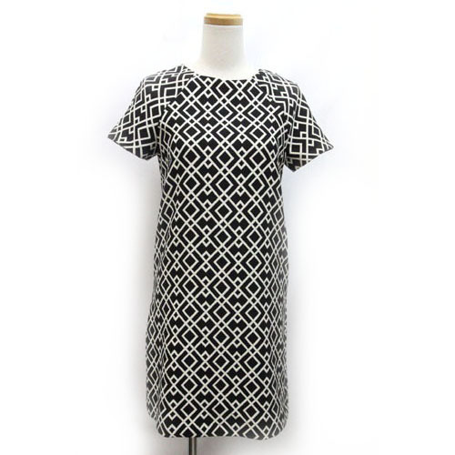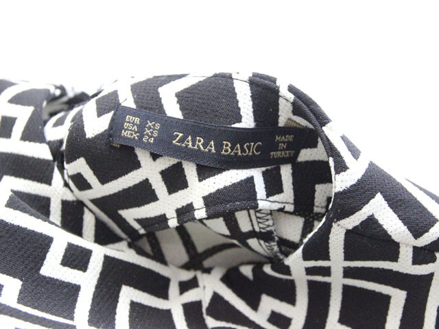 ザラ ベーシック ZARA BASIC ワンピース 総柄 パターン ひざ丈 ツートン 半袖 XS /Z レディース