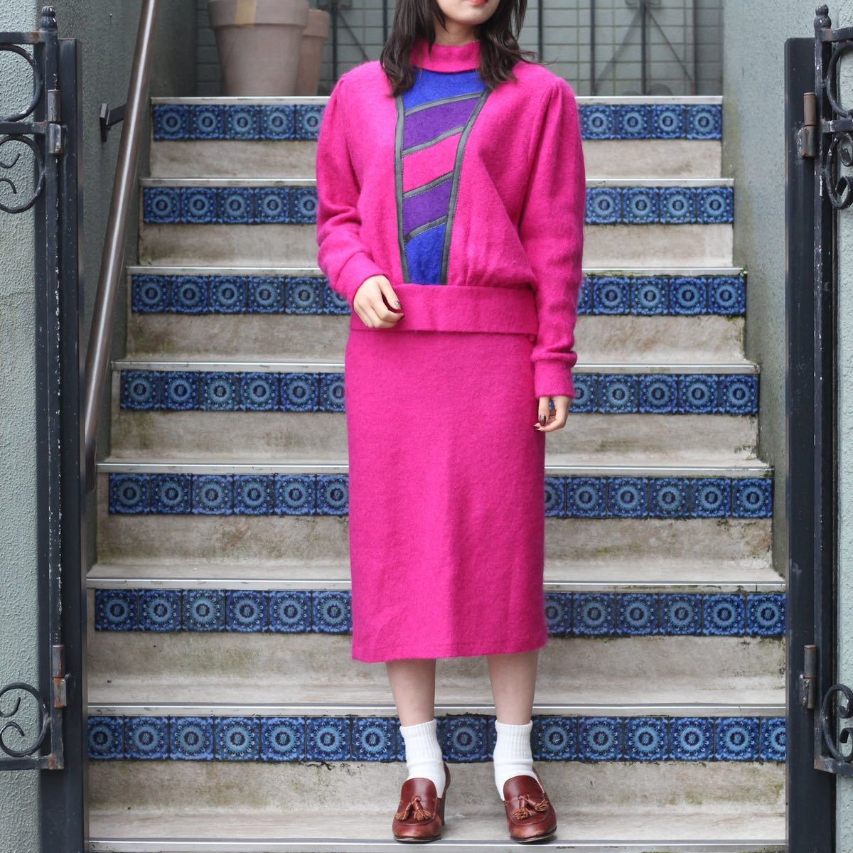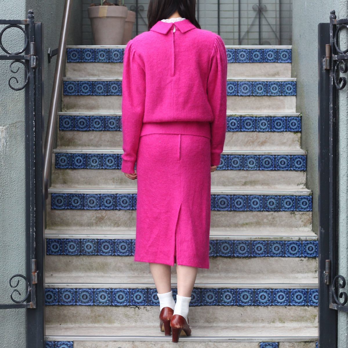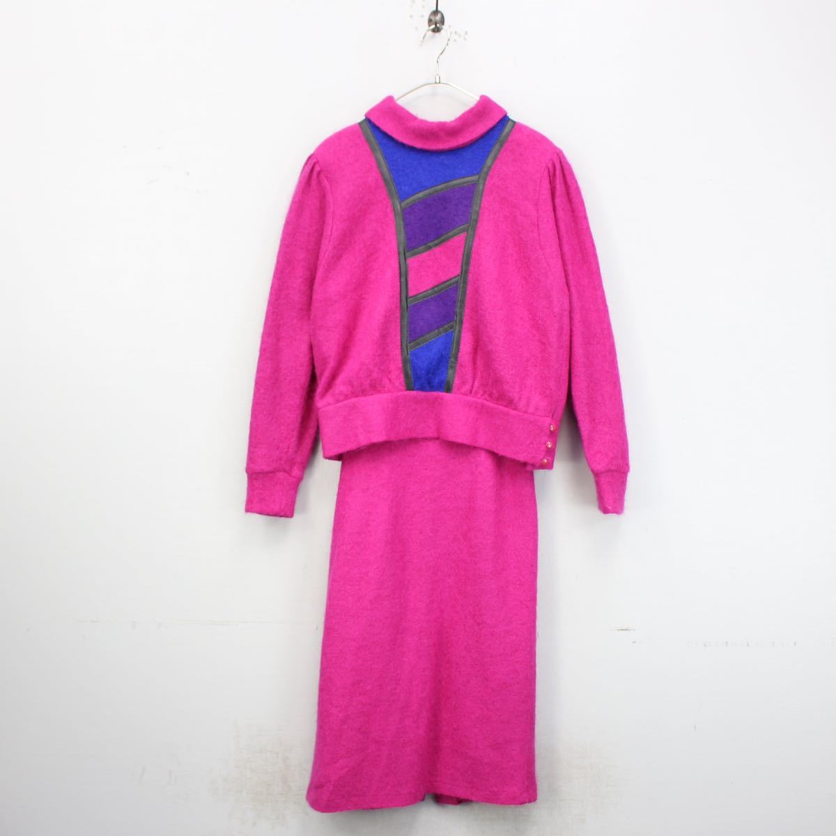 EU VINTAGE PINK COLOR DESIGN WOOL SET UP/ヨーロッパ古着ピンクカラーデザインウールセットアップ