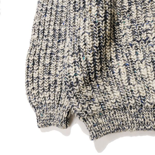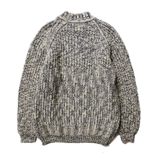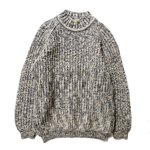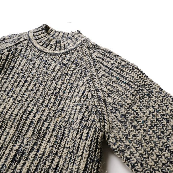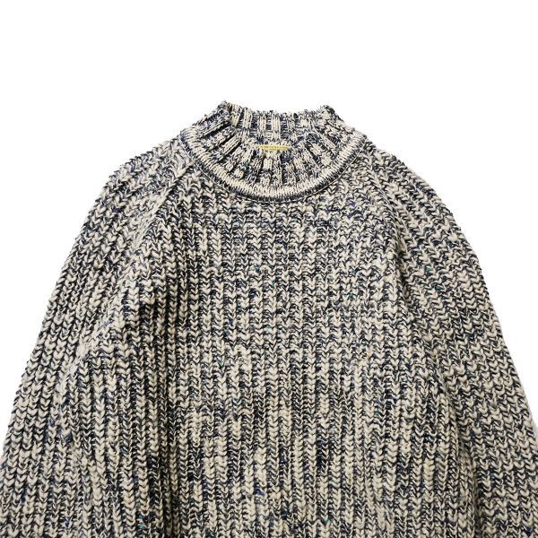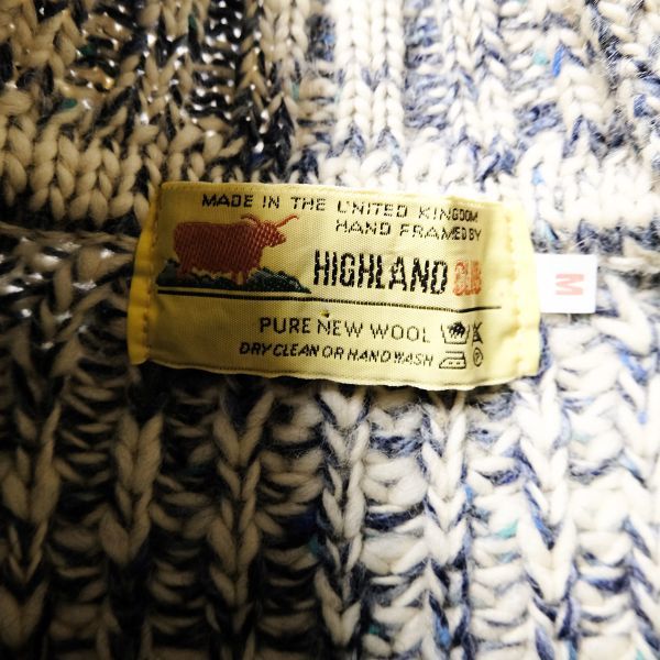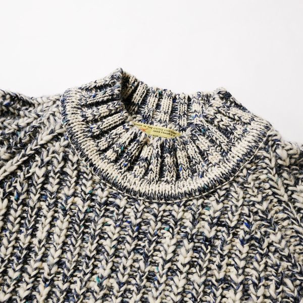 90's 英国製 ハイランドクラブ リブ編み ローゲージ ニットセーター (M) 白×青系杢 ネップ入り クルーネック イギリス製 90年代