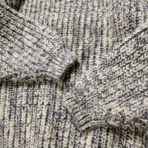 あまり見かけない白×青系杢ボディーにネップが入る気の利いた1着、