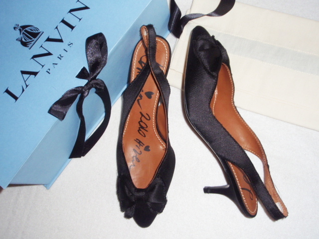 ●ランバン,LANVIN●新品,パンプスシューズ36/23cm黒リボンサテン