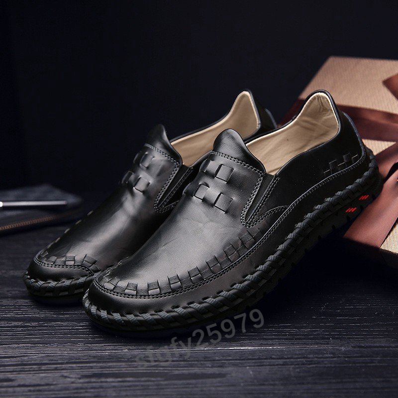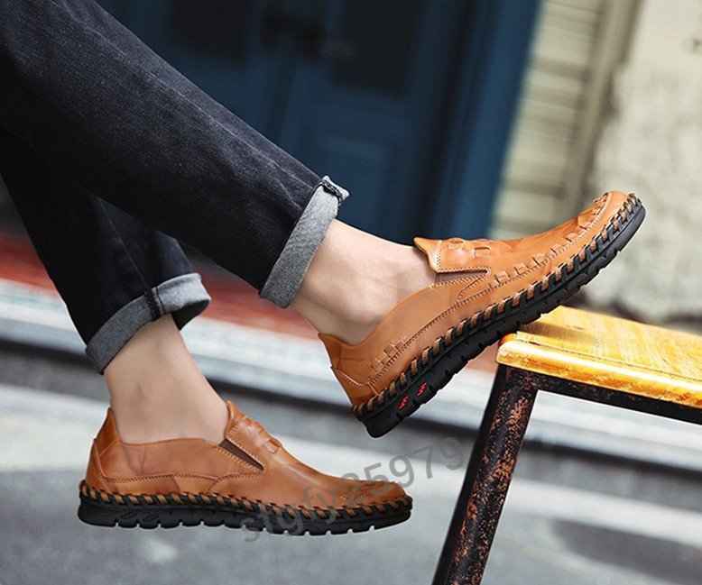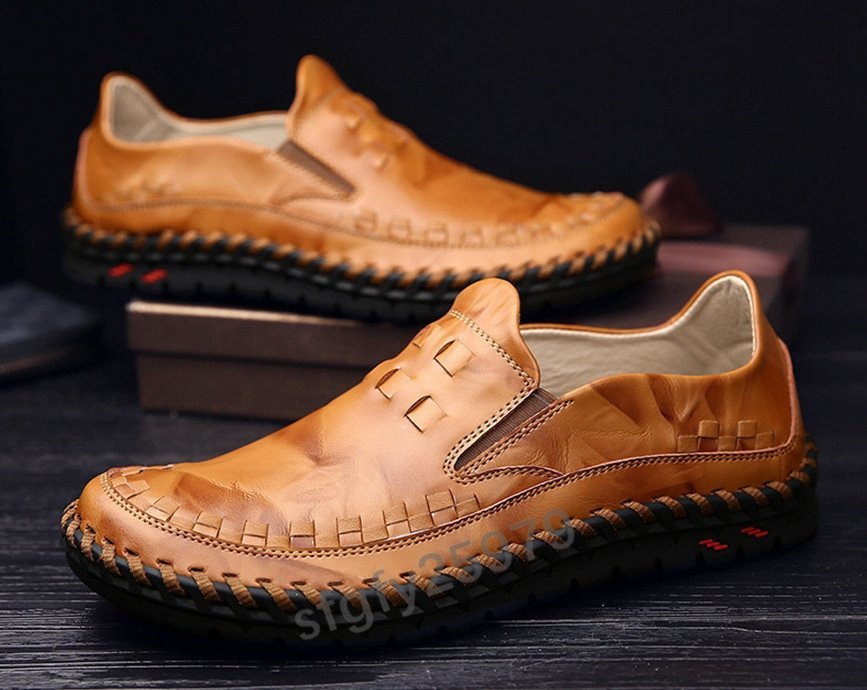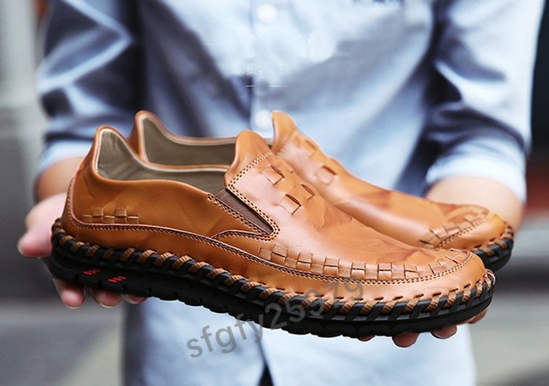 K367☆新品メンズビジネスシューズウォーキン牛革ドライビングシューズカジュアルシューズローファー編み込み手作りブラウン27cm