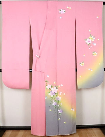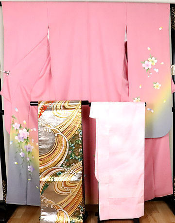 振袖と西陣織袋帯と高級長襦袢のセット 振袖 袷 丹後縮緬地 ピンク・グリーン・黄色ぼかし地桜花 167 広襟 西陣織袋帯 金銀地荒波に辻が花 仕立て上がり 高級長襦袢:単衣 袖無双 広襟 ピンク地花 新品 | |