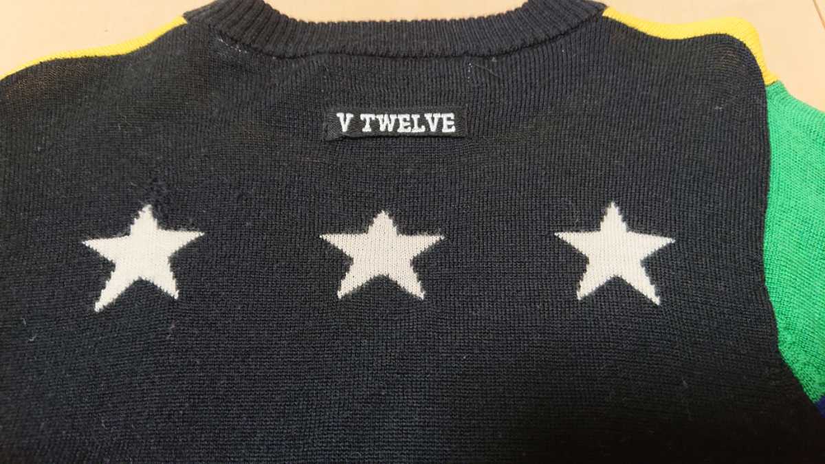 【詳細】V12らしい、センス溢れるニットです。ウール100%の為、薄手でも暖かいニットです。ストレッチが効いていて、動きやすいです。
