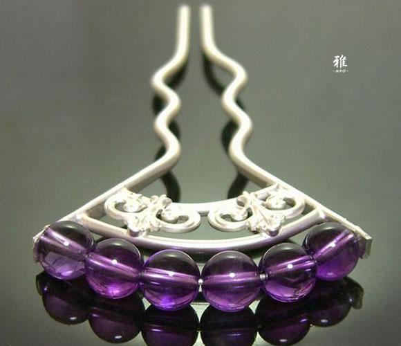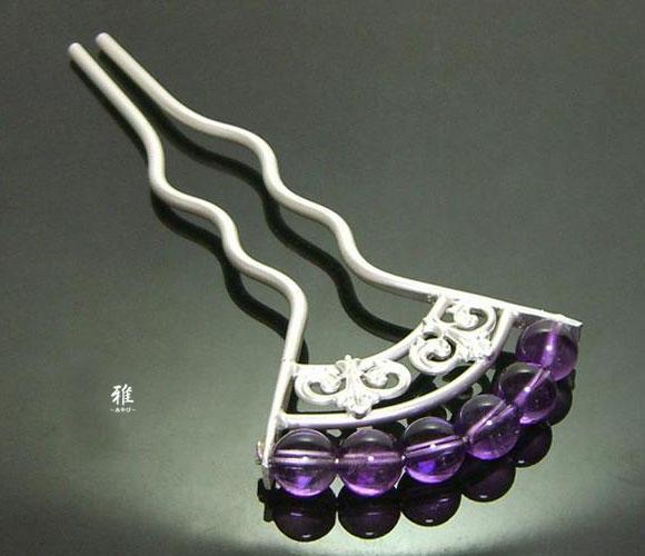 高貴な紫色が美しい天然石アメジストで大変品の良いかんざしをお作り致しました。