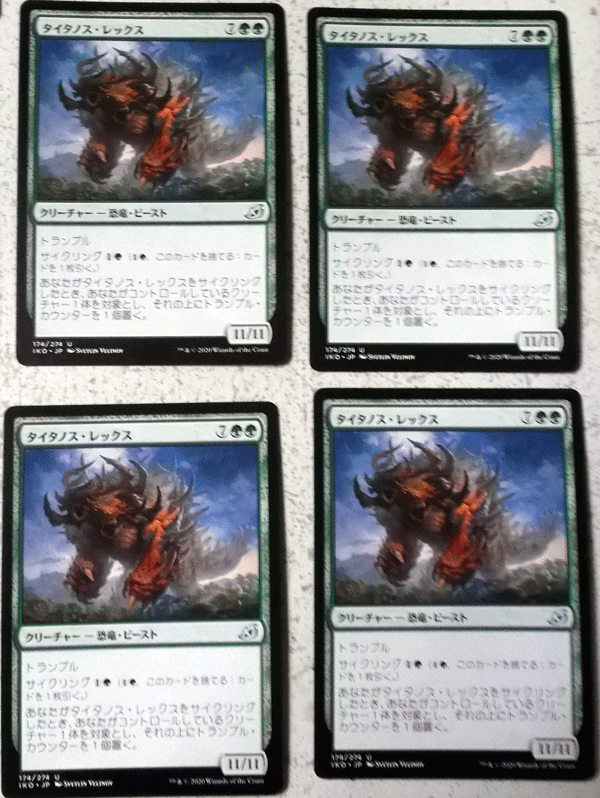 MTG/日本語/4枚セット/タイタノス・レックス/イコリア:巨獣の棲処/アンコモンです。中古品扱いですので、神経質な方、美品をお求めの方は入札をご遠慮ください。