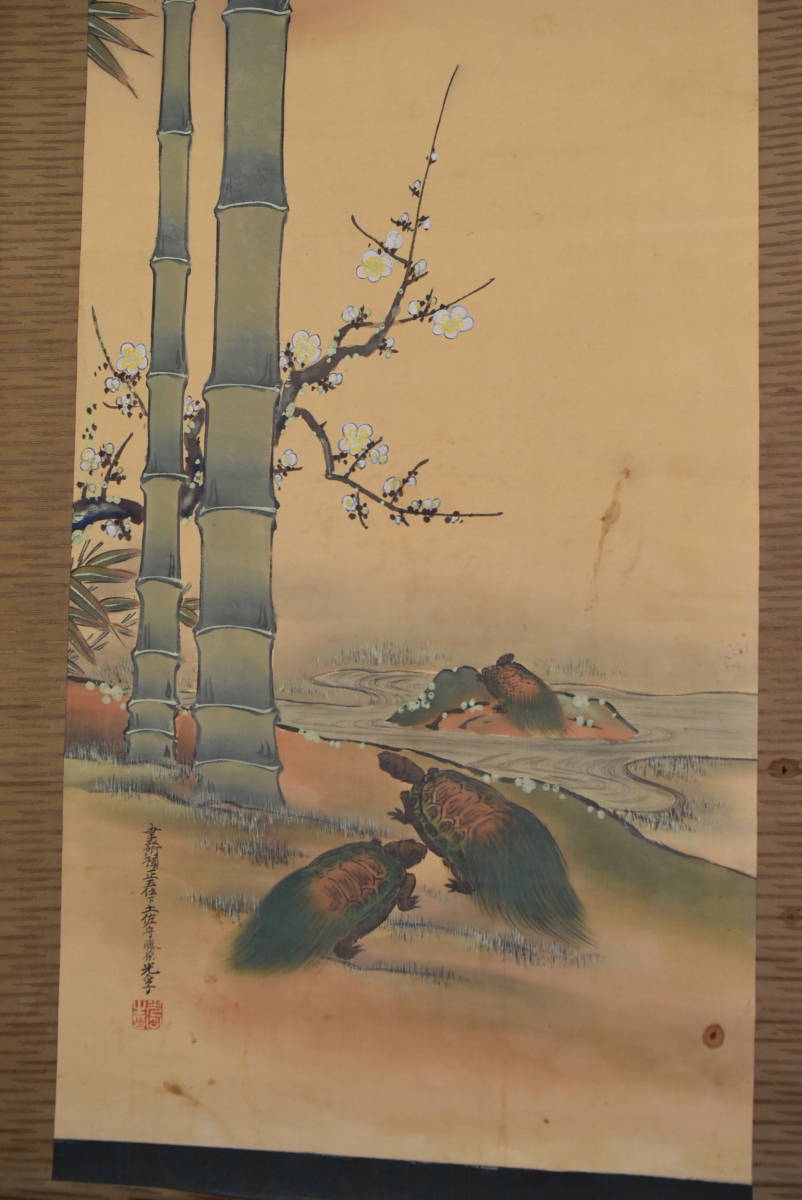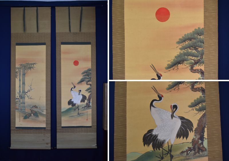 真作/土佐光貞/土佐光学/合作/松竹梅鶴亀図/双幅//掛軸☆宝船☆AB-330