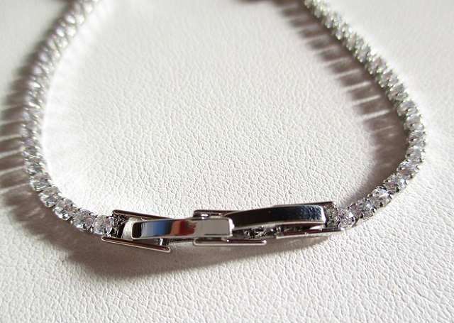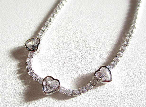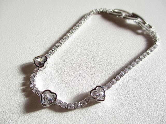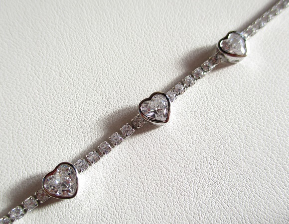 複雑なカットで美しい輝きを放つキュービックジルコニアのブレスレットになります。ハートシェイプのCZがフェミニンな細身のブレスです。