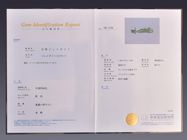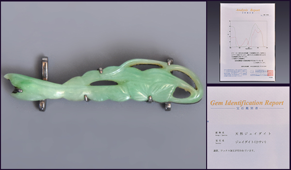 | 翡翠 ジェイダイト ササゲ帯留 宝石鑑別書付 |