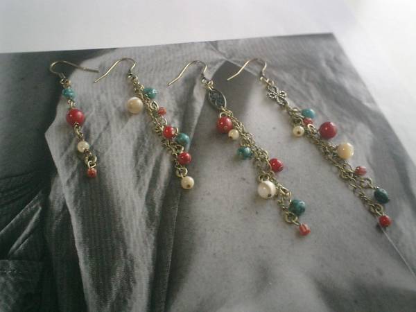 イノセントなパターン・・シリーズです♪夏色のオブジェ・・可憐なターコイズのピアス4本セットです♪デザイン違いのピアス4本です♪お揃いでもお作り出来ます♪色々な組み合わせで楽しんでいただけます♪♪5ミリから6ミリ位のタンブルのターコイズに4ミリ、6ミリの丸玉の珊瑚やマザーオブパールやアンティークビーズを合わせてオリエンタルなデザインチャームでおめかししました♪大人仕様のデザインです♪長さは左から6・5センチ、7・5センチ、9・2センチ、9・2センチくらいです♪♪イヤリングにも変更出来ます♪お揃いのネックレスやブレスレットも出品しています♪シンプルで飽きのこないいつまでも着けられるデザインを考えて作りました!ハンドメイドをご理解いただいてノークレーム、ノーリターンでお願いします