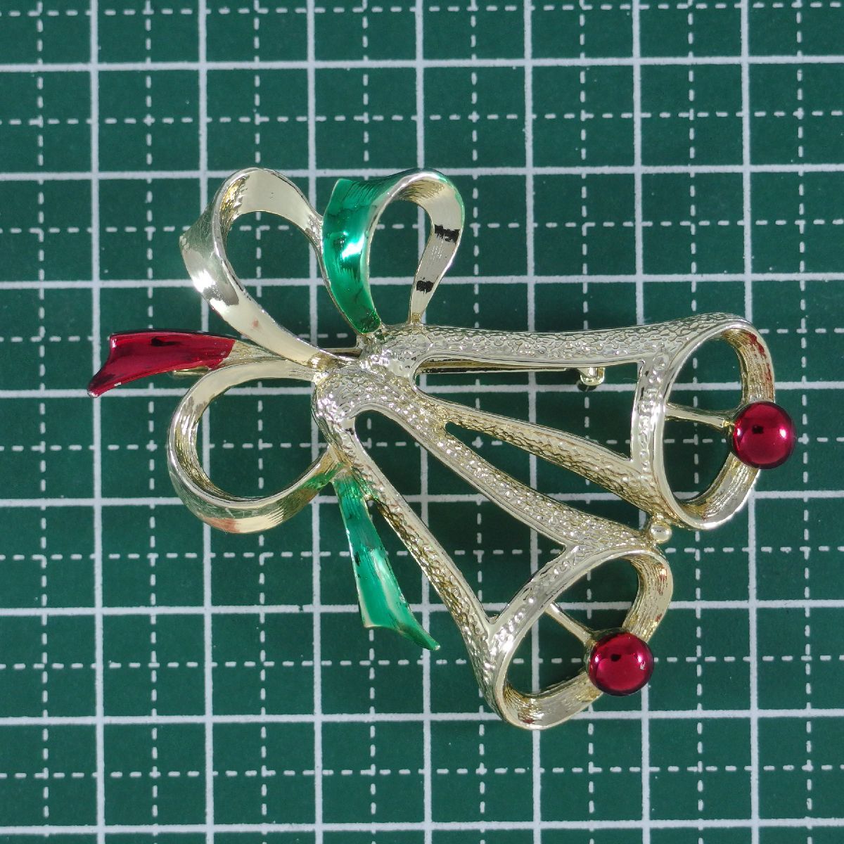 A8466◆【GERRY'S】◆ リボン & ベルモチーフ * クリスマスデザイン ◆ ヴィンテージブローチ ◆