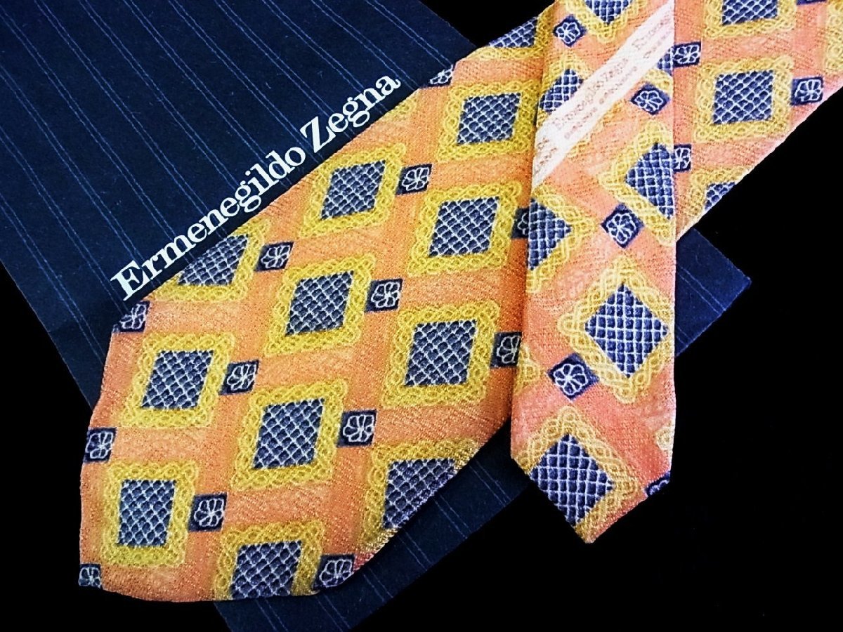 ★今週の特売★3129★高級ブランド【キャラ柄】★ゼニア【菱形 花 デザイン 柄】ネクタイ★