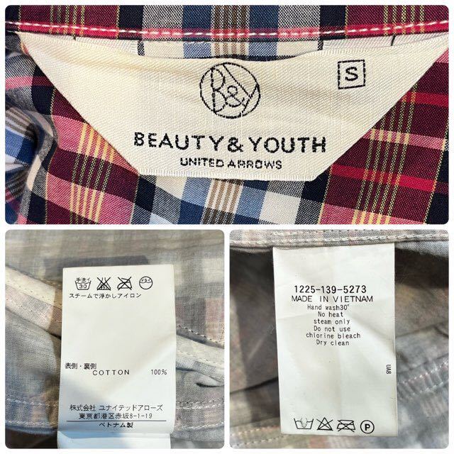 K756 メンズ ブルゾン BEAUTY&YOUTH UNITED ARROWS ユナイテッドアローズ ジャケット チェック 柄 薄手 ジップアップ 小さいサイズ / S (6)