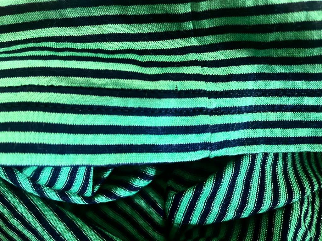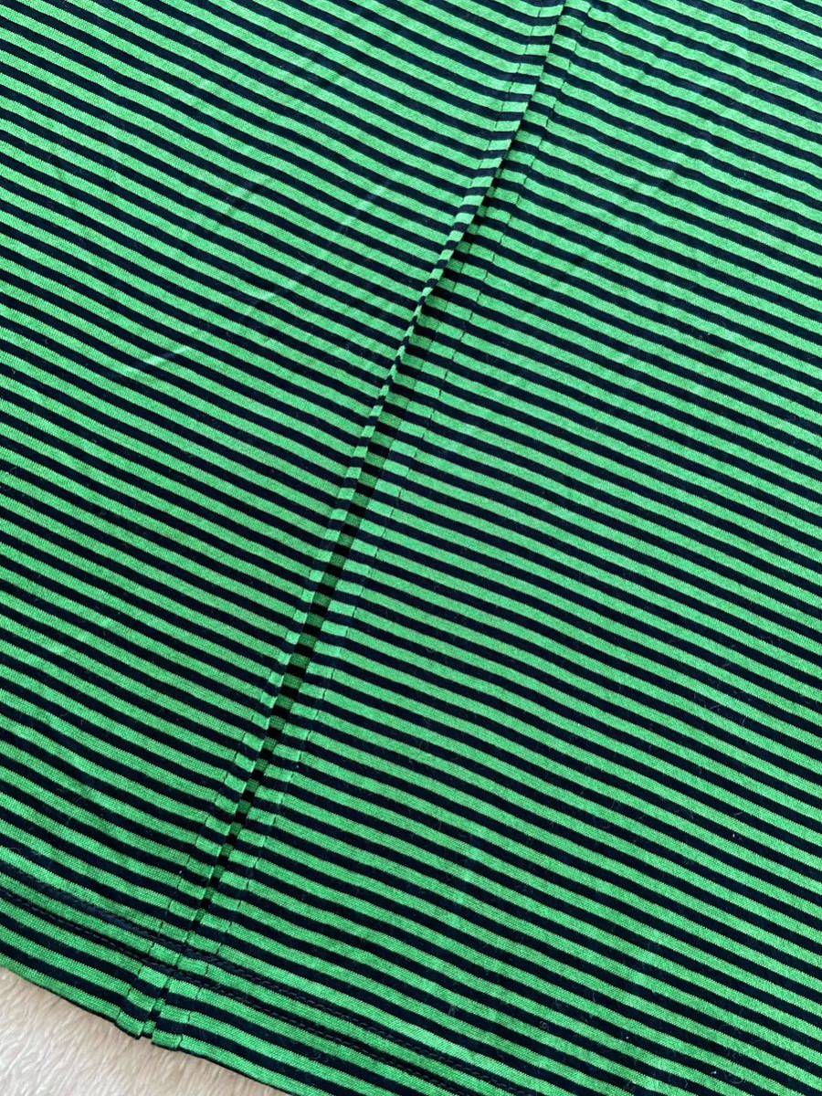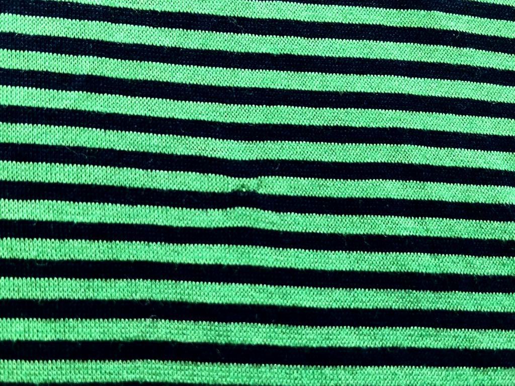 発色の良いグリーンカラーとブラックの色合いの細身のボーダーもとても素敵です。