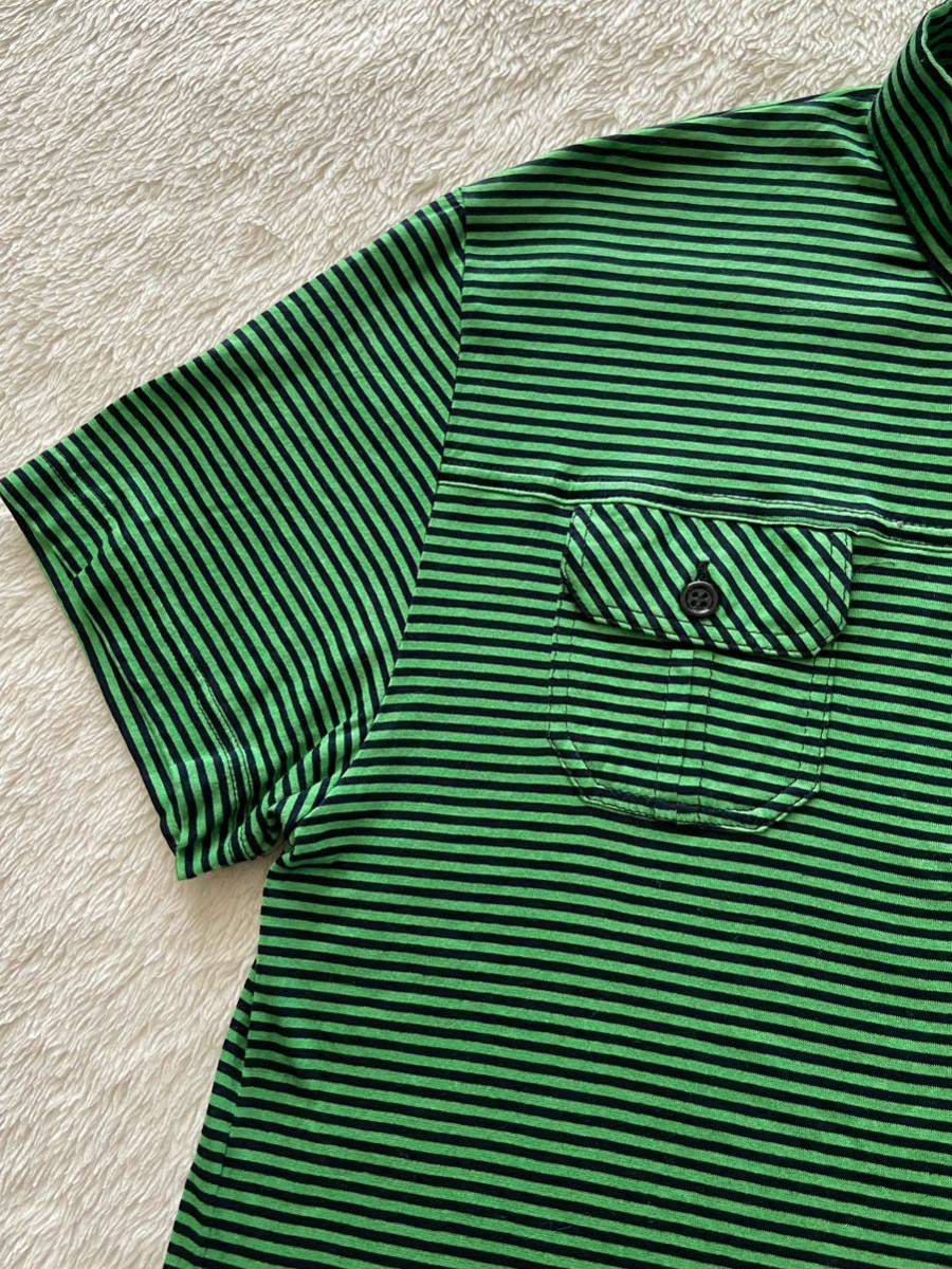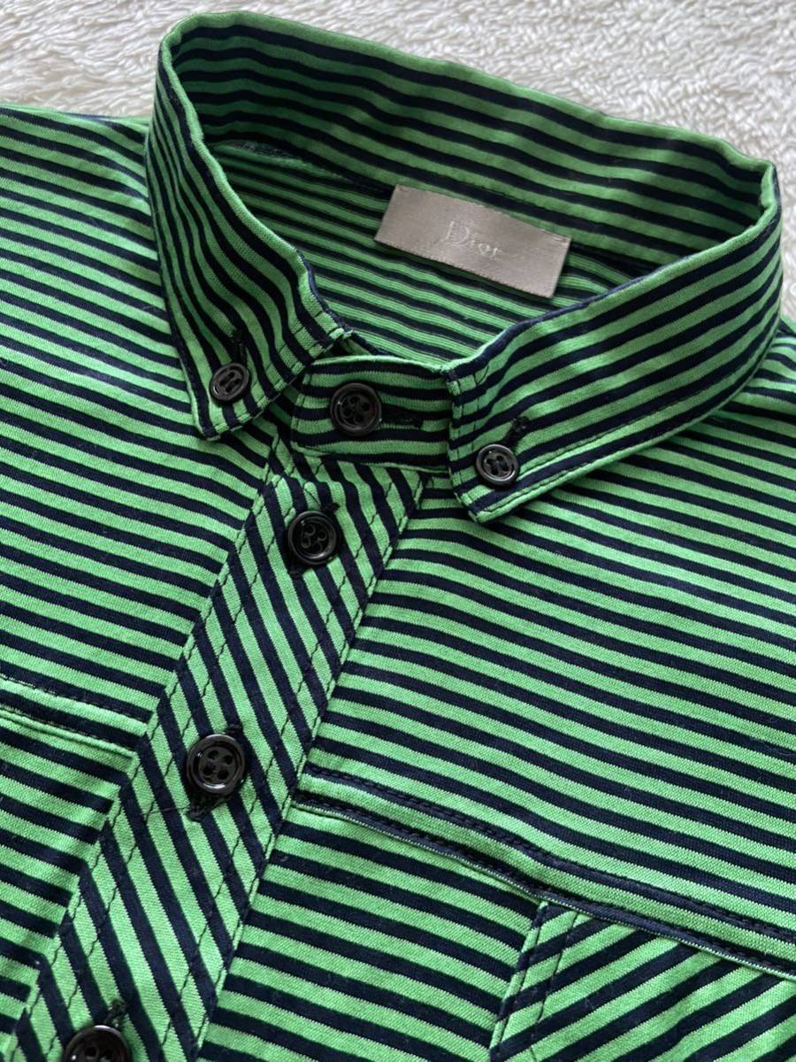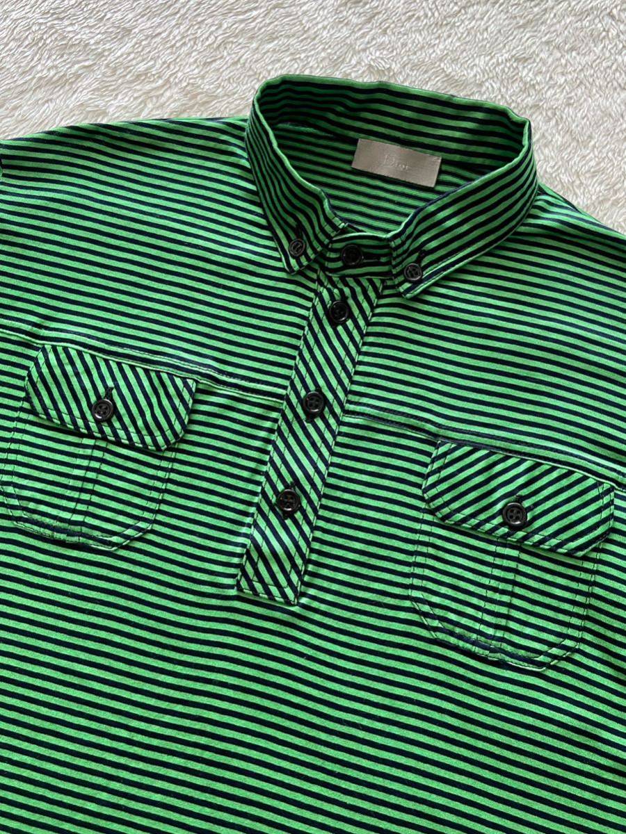 Dior homme sizeXS イタリア製半袖ポロシャツ メンズ ボーダー グリーン ブラック プルオーバーシャツ ディオールオム 緑 黒 ボタンダウン