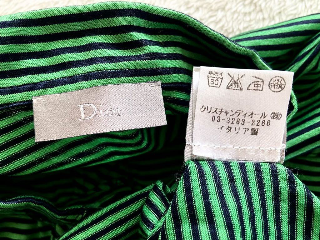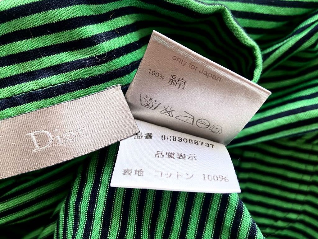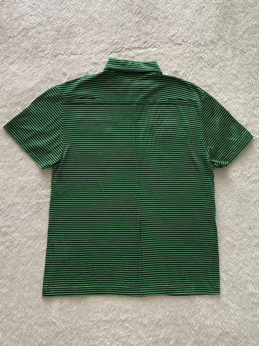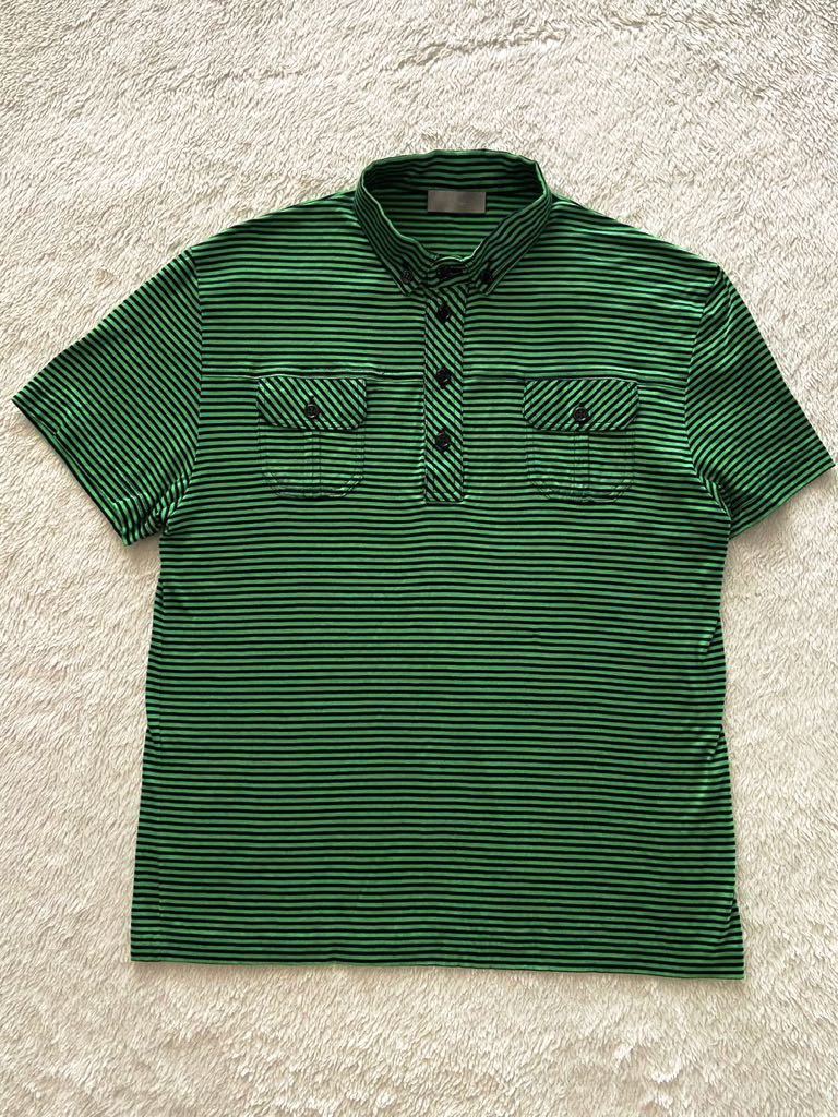 Dior homme sizeXS イタリア製半袖ポロシャツ メンズ ボーダー グリーン ブラック プルオーバーシャツ ディオールオム 緑 黒 ボタンダウン