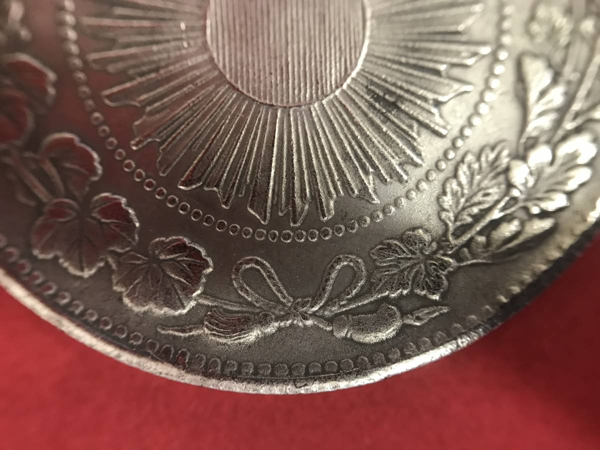 -------------------------------------------------------------------------------------------- ご入札前に必ず下記の発送詳細・注意事項をお読みになり、 お客様がご十分にご納得された上でのご入札、 ノークレーム・ノーリターンでお願い致します。 緊急なこともコメントしますので自己紹介欄も必ずご確認下さい。 (ご入札された時点で同意されたとみなします) 質問・疑問等がございます方は予め質問欄にてお問い合わせください。 ご質問にはなるべくお答えするようにしておりますが、 出来ない時もございます。 その際はご了承下さいませ。 ------------------------------------------------------------------------------------------------ 旧1円銀貨 明治3年 約19.8g 一圓 明治三年 貨幣 円銀 材質不明 磁石反応なし 古銭 収集品 サイズ:3.8㎝ 厚さ:約2㎜ 量目:約20g 状態:保管品/コレクション品 商品管理番号:179775-23 ※付属品等は、画像にてご確認ください。 画像の物が全てです。 ◇注意事項◆ ①完璧な、お品をお求めの方・神経質な方のご入札はご遠慮ください。パソコン、携帯などで見て頂いている商品画像は現物と色合いが異なる場合がございます。 ②落札後2日以内にご連絡が取れ、3日以内に、ご入金が出来る方のみご入札をお願い致します。 ③評価に悪い・非常に悪いが多い場合(当方判断)落札を取り消させていただく場合がございます。 ④17:00以降はメール、取引ナビ、質問等の返信ができません。翌日の10時以降には連絡差し上げます。ご了承下さい。(質問などでお答え出来ない場合があります) ⑤いたずら入札、お客様の都合による返品・キャンセル交換等は一切受け付けることができません。(万が一、キャンセルになった場合、※落札金額の8.64%を支払って頂きます。) ⑥当方の商品は、店内でも販売している商品もあります。商品が品切れになった場合、また入札の無い商品に関しては出品終了日を待たず、出品を取り消す場合がございます。 ⑦落札されてから3日以内に連絡が取れない場合、キャンセル扱いとなり⑤の()内と同じになります。 ⑧送料、振込手数料は落札者様ご負担でお願い致します。 ⑨集荷発送の関係上、ご入金されてから、1~3日後の発送となることがございます。 ⑩必ずノークレーム、ノーリターンで、お願い致します。 ⑪発送サイズは落札後の梱包の為前後してしまう事がにございます。その際は、ご理解お願い致します。商品によっては複数に分けての発送となります。 ※上記の点をご理解の上、入札、落札お願い致します。 【お願い】 いたずら入札はご遠慮下さい。。。m(__)m ご連絡が取れる方でお願いします。 買取センターGP茂原店 千葉県茂原市小林1606-10MCM内 0475-47-3276 10:00~19:00 ~発送について~(普通郵便・定形外発送可能商品の場合の注意点!) 発送トラブルが起きております。 普通郵便・定形外発送は追跡・補償などはございませんので 普通郵便・定形外発送での発送をご希望のご落札者様は ご理解をして頂いたご落札様のみでお願いします。 当方での責任は負いかねます。 当方は、ご入金確認できましたら、必ず発送しております。 | |||