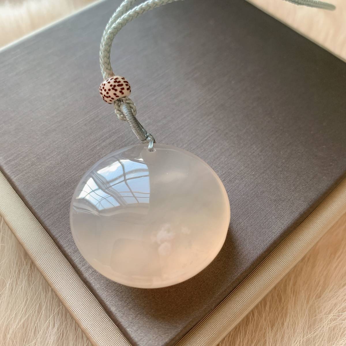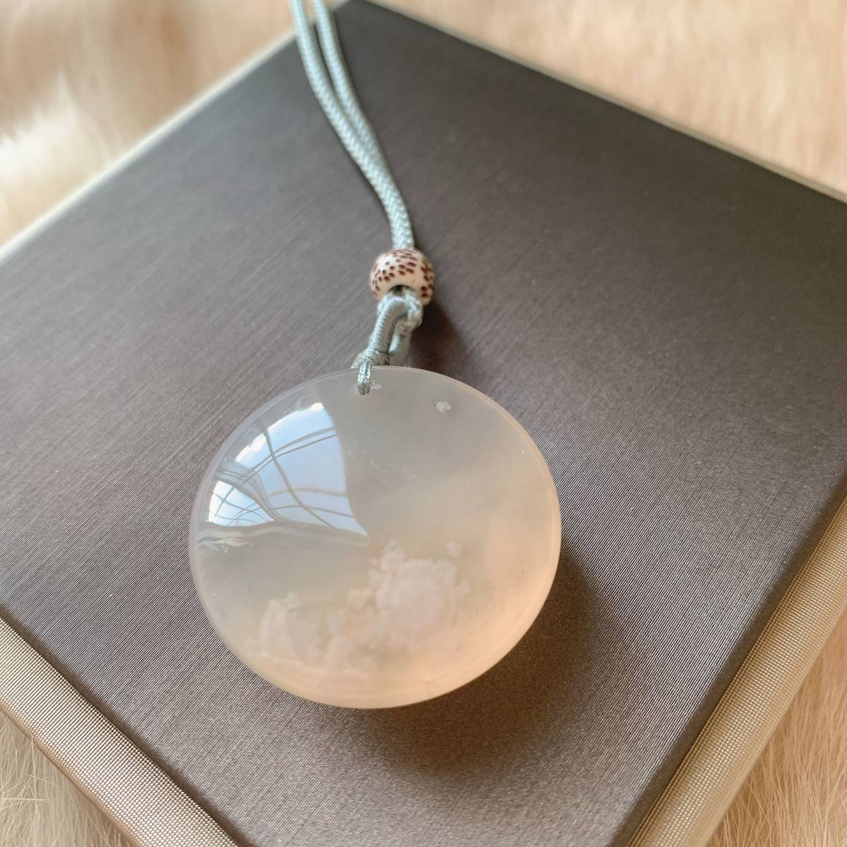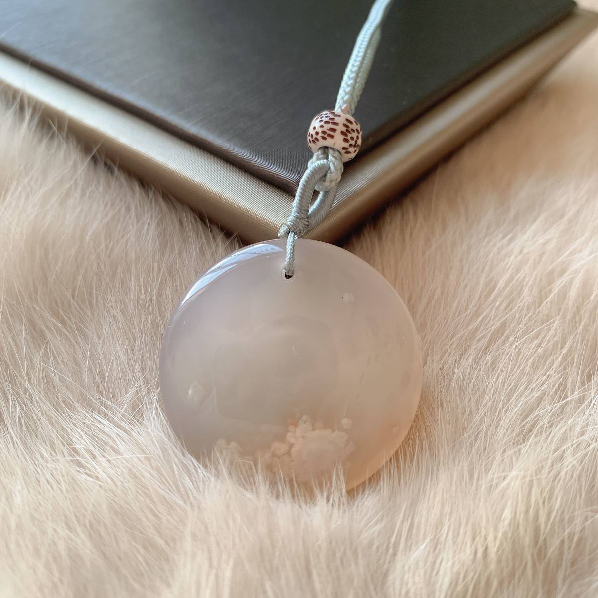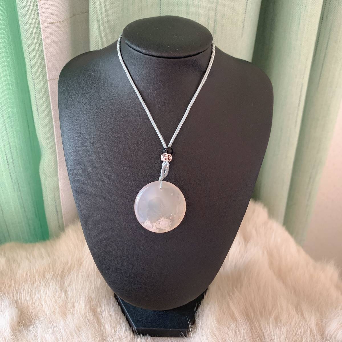 淡い透明感のあるピンクのアゲードの中にまるで桜の花が咲いてるかのように見えるパワーストーンです