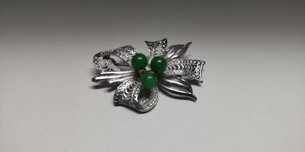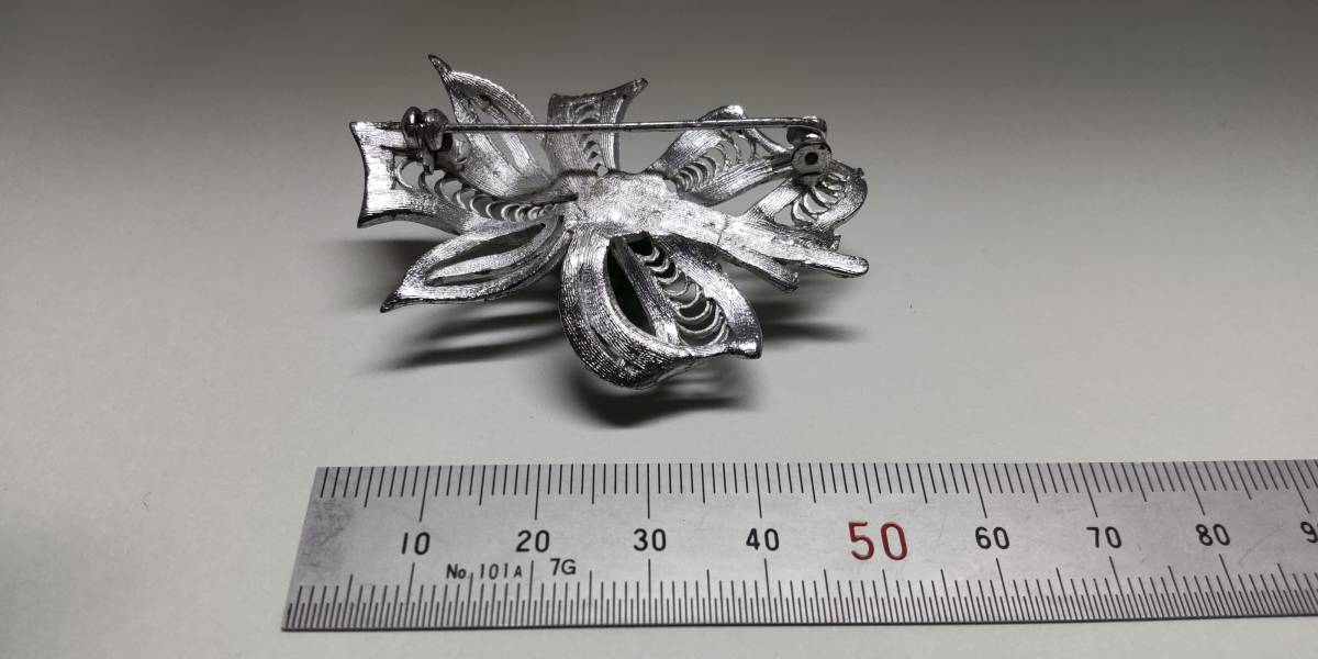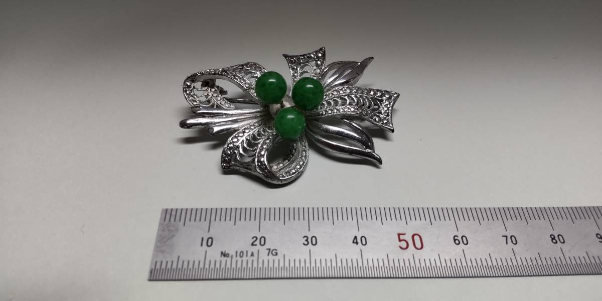 「さんご調 ブローチ グリーン緑・シルバー銀色系 アクセサリー」宝石 貴金属ではありません~未使用【送料無料】 おかあさんのお針箱 0432