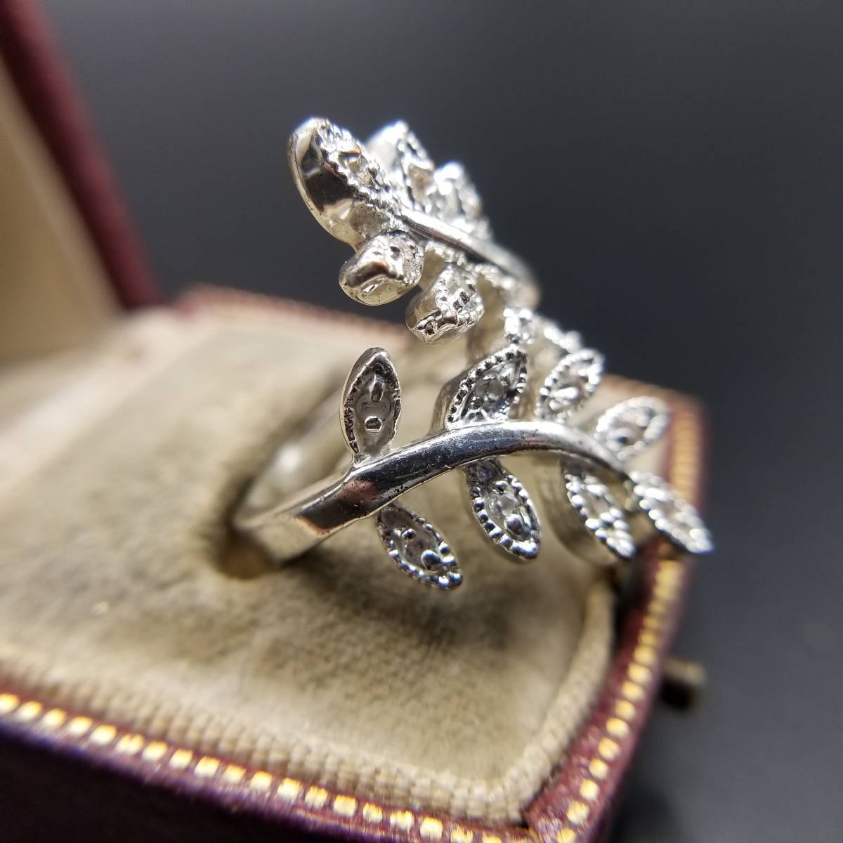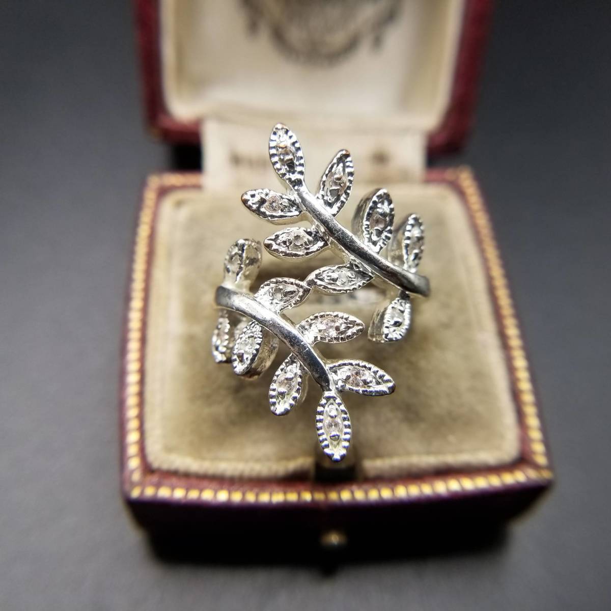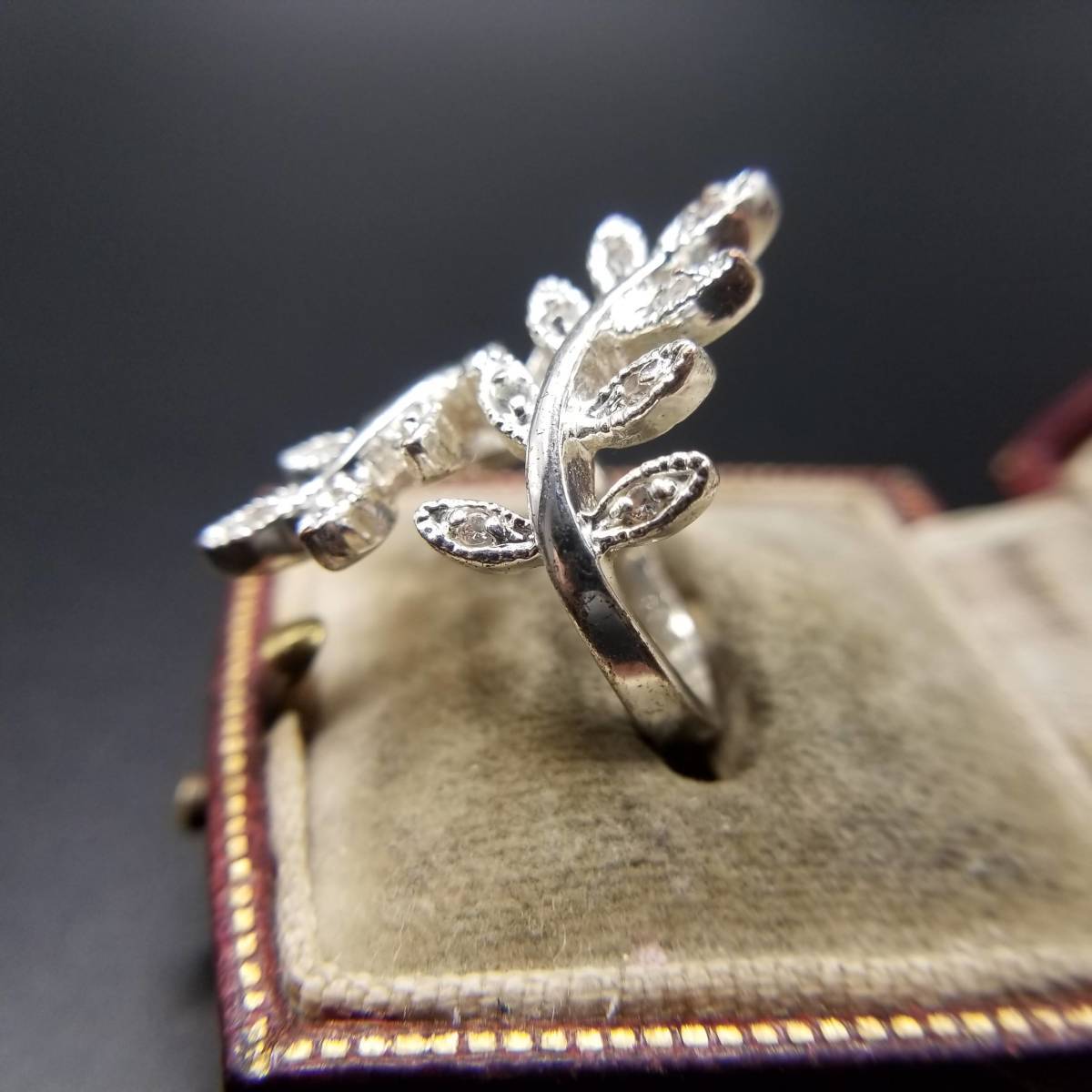 リーフ 葉 ラップリング ラインストーン ビンテージ リング アールデコ 指輪 昭和レトロ アクセサリー ジュエリー 輸入 YAV②15